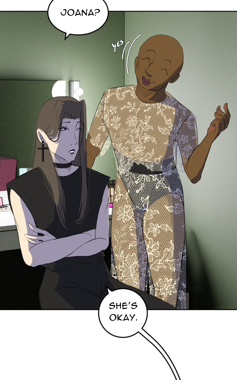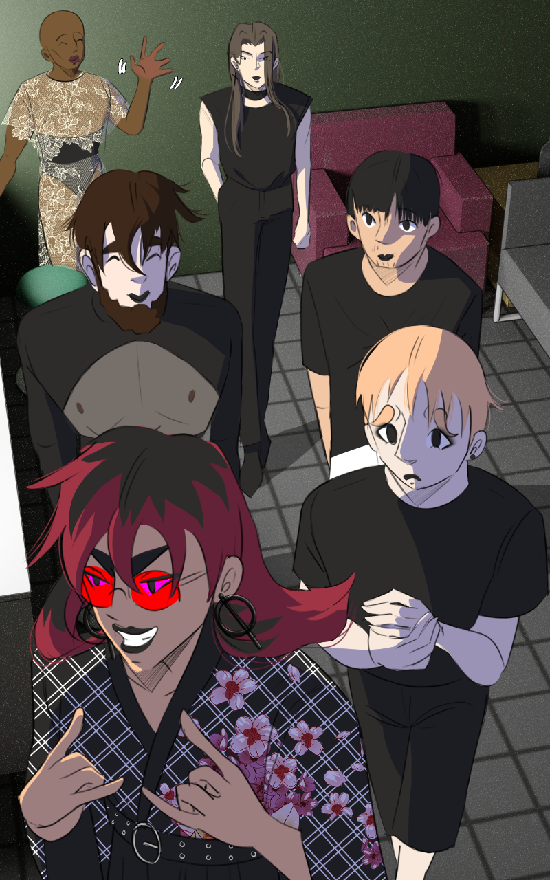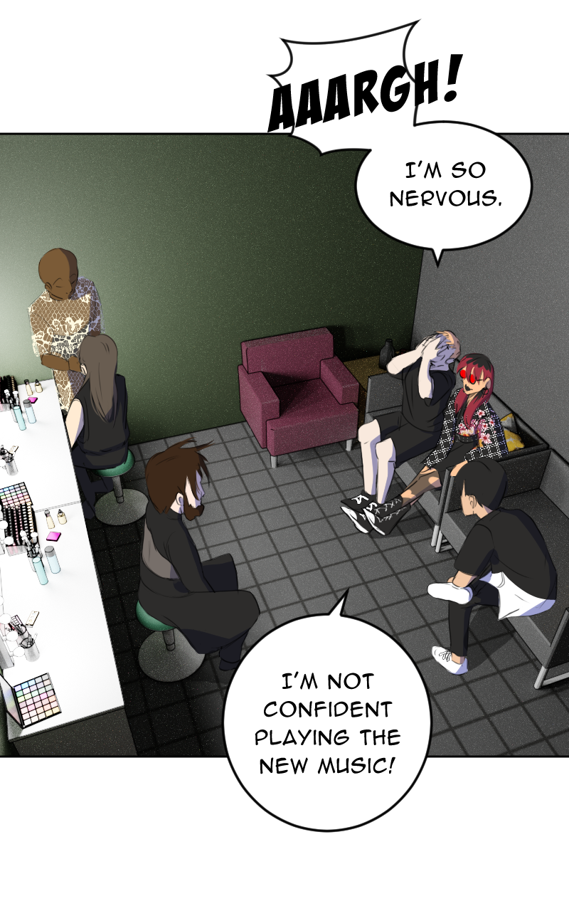 Oh! New role for Isabel! And for Wasabi!! I love the way Wasabi did their makeup! 🤯 This is so interesting; I guess Isabel's band plays in the same studio where she works? Or I guess probably Wasabi just has a side gig as a makeup artist.