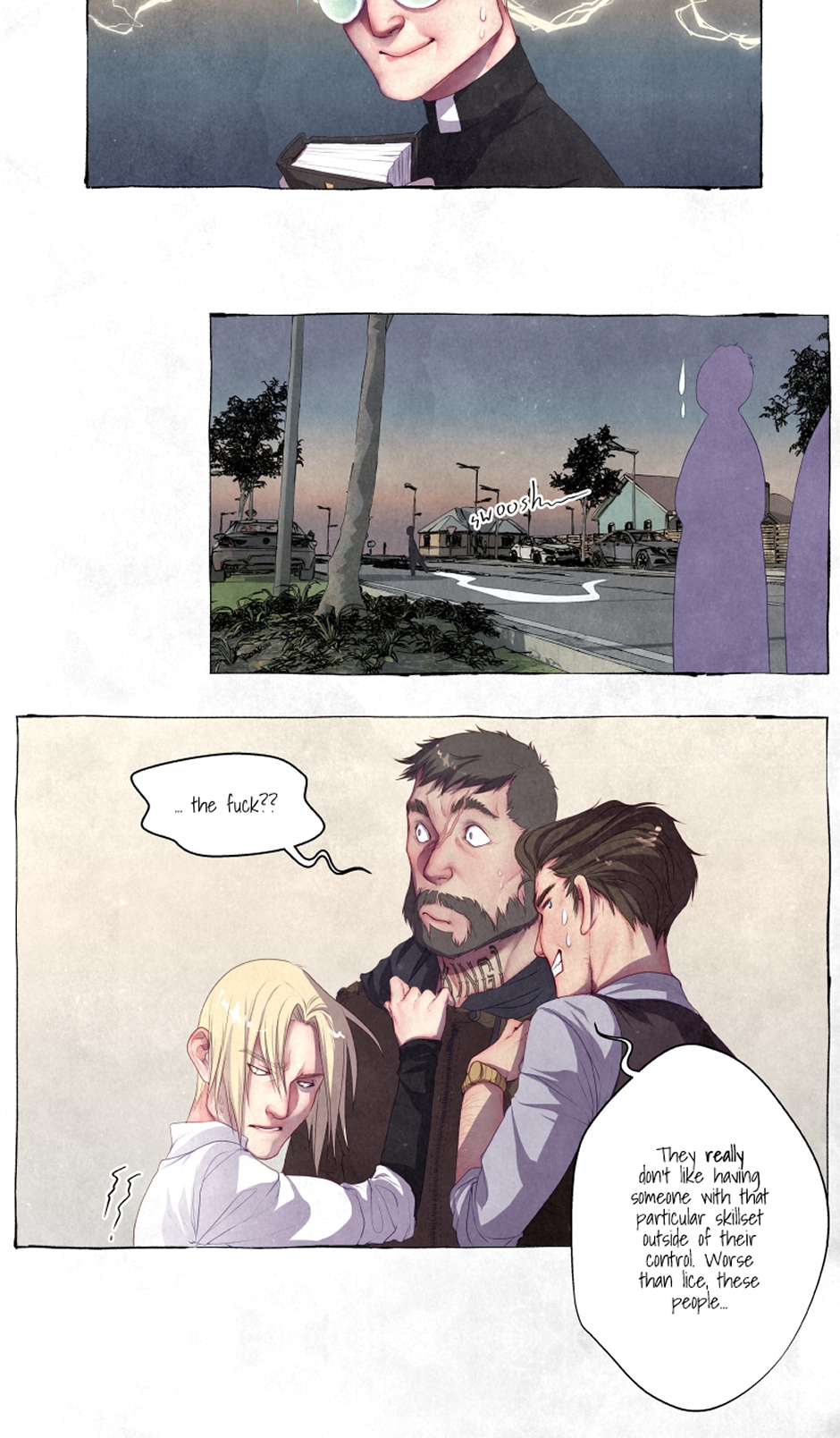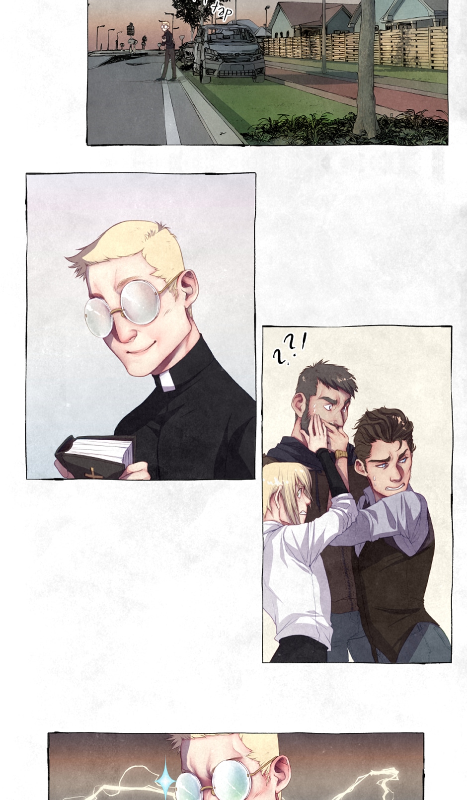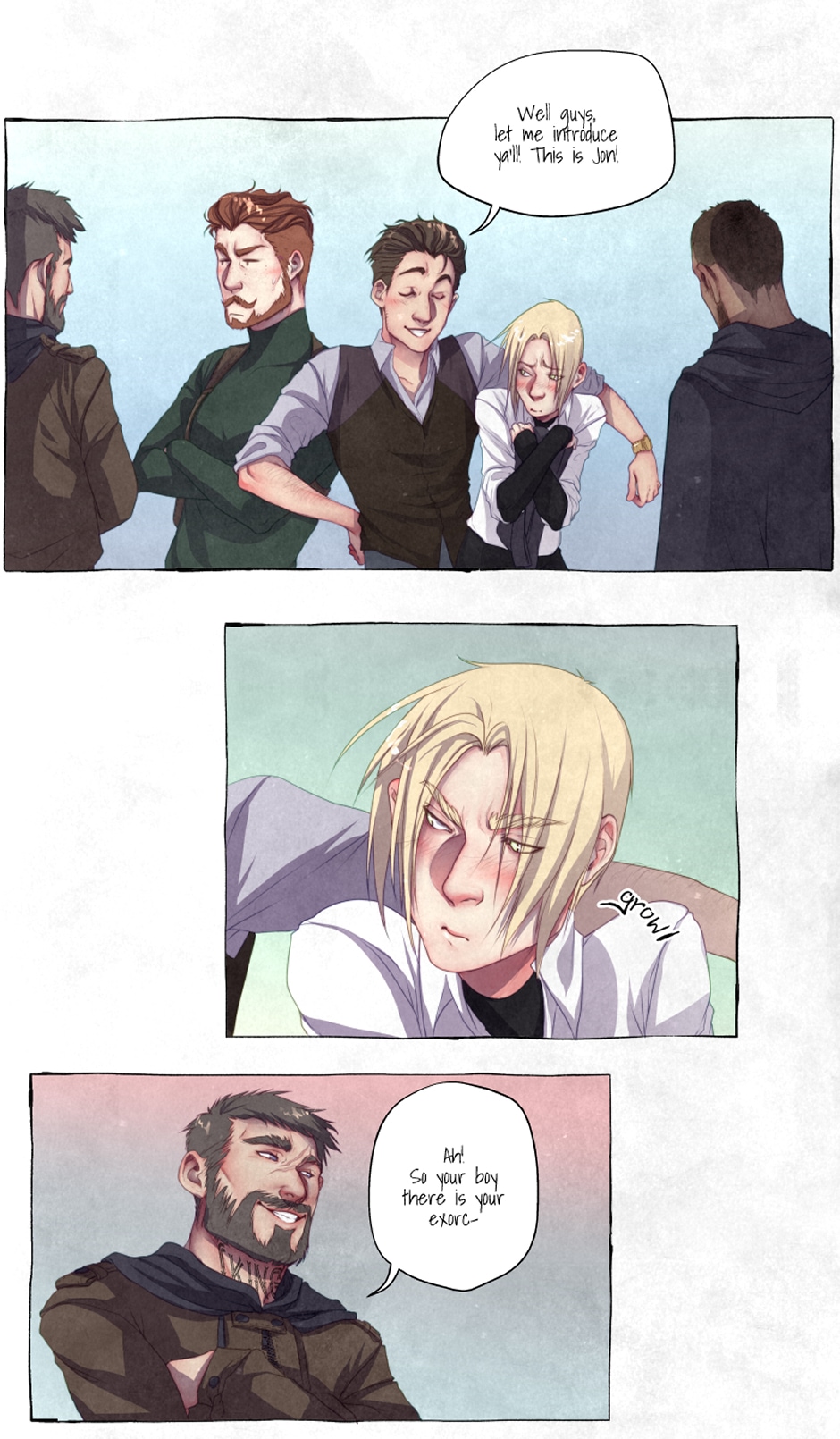 A merry bunch of strange men trying to adjust working with each other to solve supernatural cases, chasing ghosts and being mysteriously.... stupid. A multi part story featuring a mute exorcist who wants everything, a demon that won't deal with ghosts, a magpie on the run and an ex-cop who refuses to fall in love.