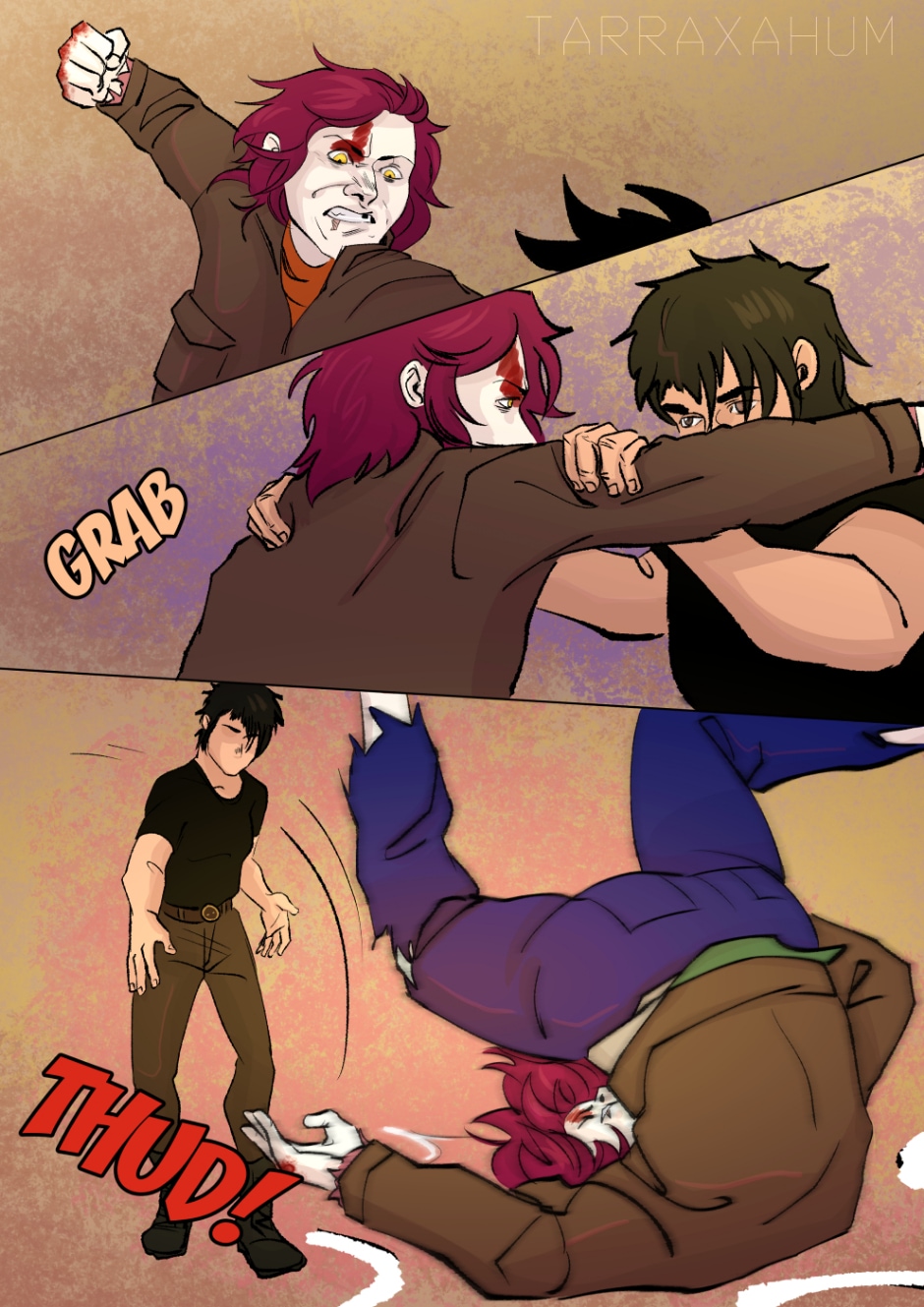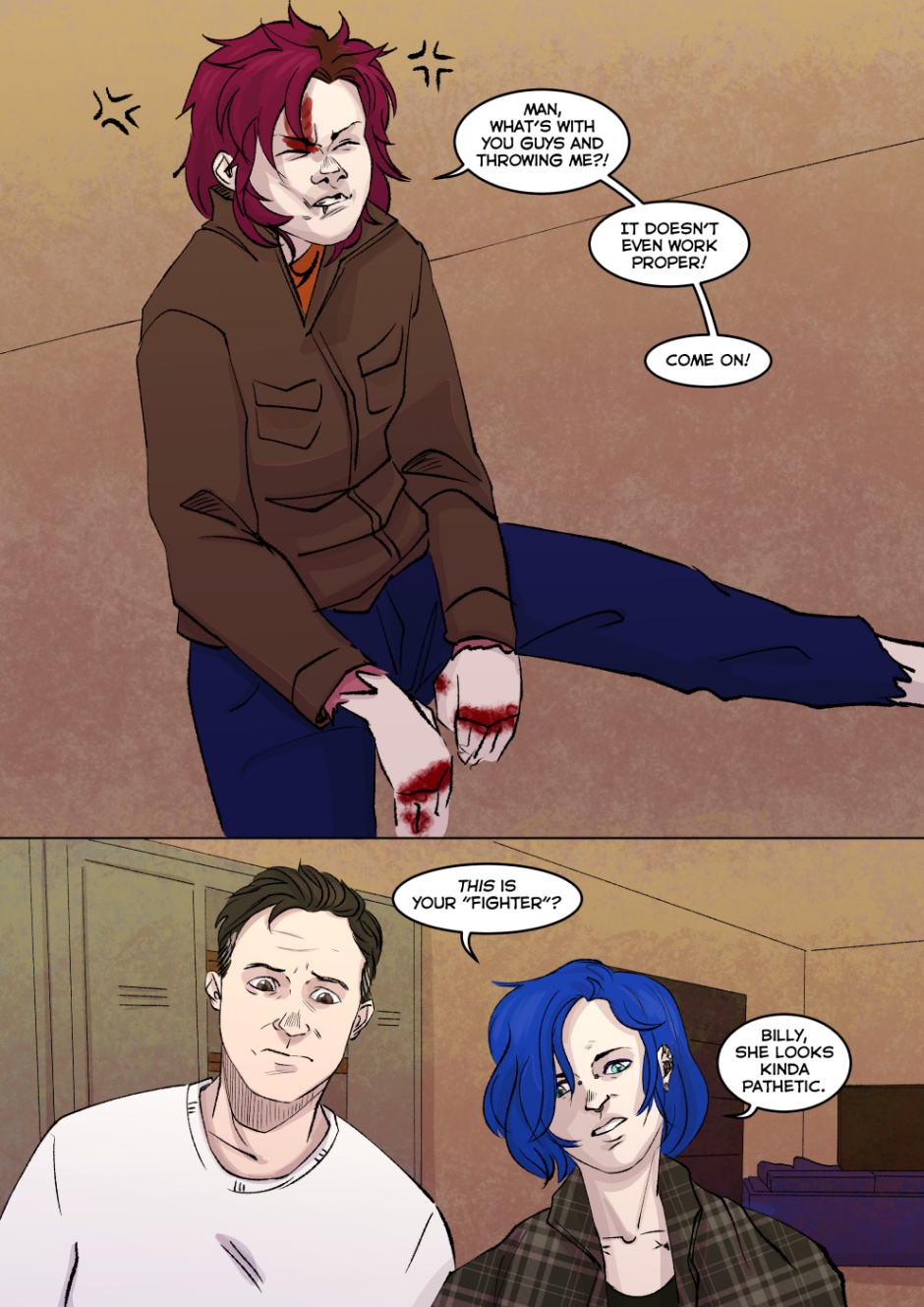 is that purple eyeliner ?so pretty .. did her gf do it 🤔 (she is in no way single just look at her! Can't convince me otherwise.) on the other hand our protag needs some love and hugs. Maybe some pats on the head too, that was a hell of a beating!