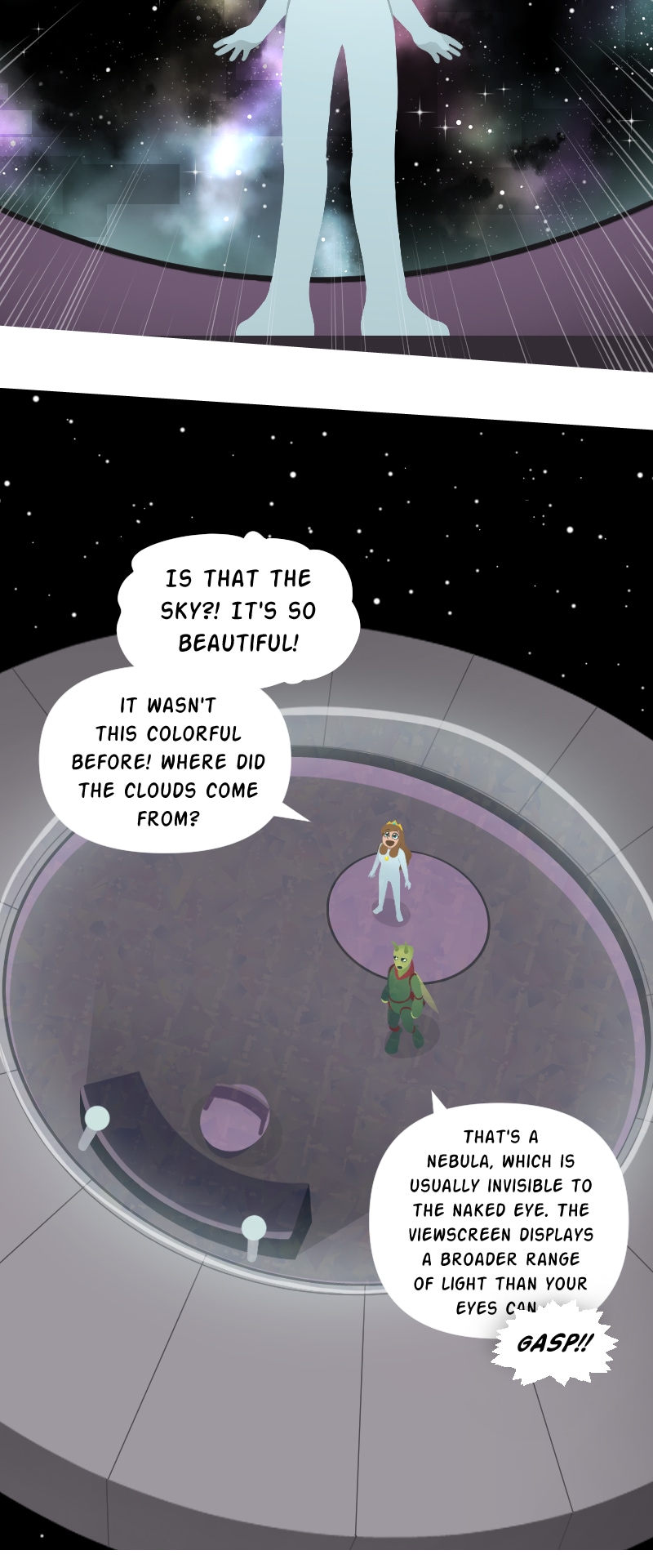 While waiting for her knight in shining armor to rescue her from a fire breathing dragon, Princess Lucy makes a poorly worded wish on a shooting star, and it takes her on a magical adventure to outer space! With help from the mysterious starstone, a fugitive alien prince, and many strange new friends, Lucy must navigate a whole galaxy to get back home, bringing a little bit of magic wherever she goes. [Updates weekly on Sundays!]