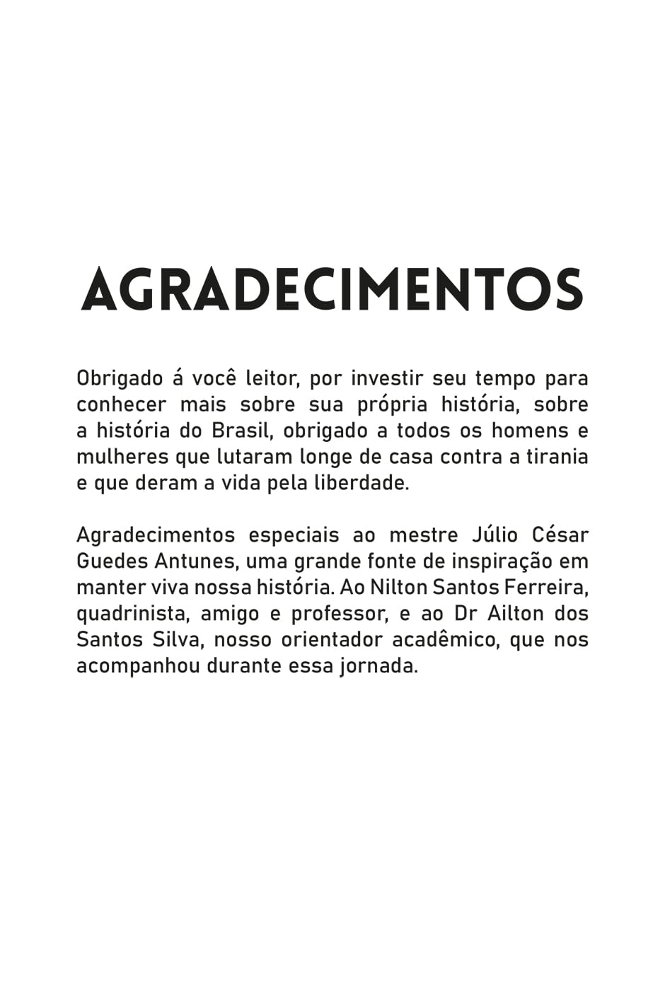 Obrigado por manter a história de nosso país viva e por conhecer nossos feitos e heróis. Tenha uma ótima leitura.