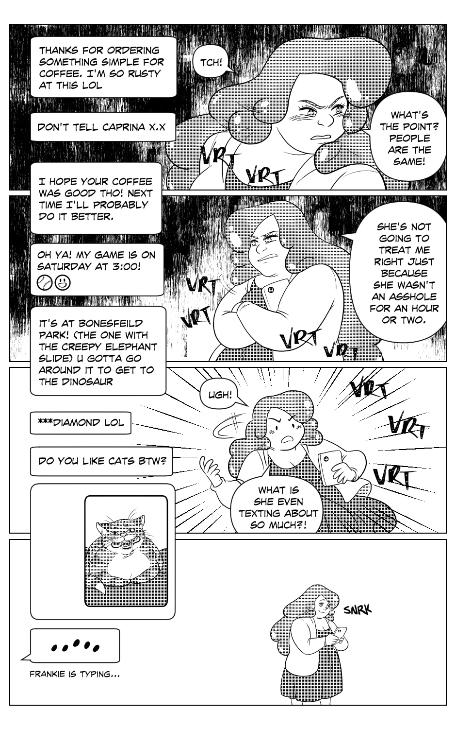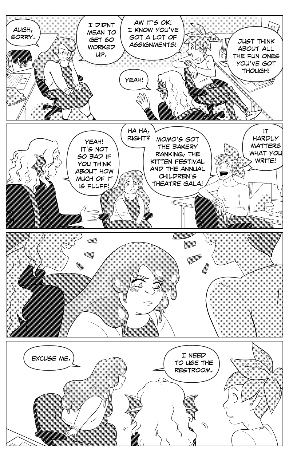 Frankie is young monster who’s life often feels like it’s about to unravel— she can’t even count on getting through a softball game with all her limbs still attached! When she meets Momo, a girl who— despite being made of squishy, pink slime— is as sharp as she is cute, Frankie wants nothing more than to get closer to her. In order to do that however, Frankie now finds herself having to thread the needle around a new job, a scheming skeleton and the world’s hairiest ex-girlfriend drama. Join Frankie in a world full of monsters, magic and (hopefully!) love, as she tries her best to set the seams on an exciting new life!