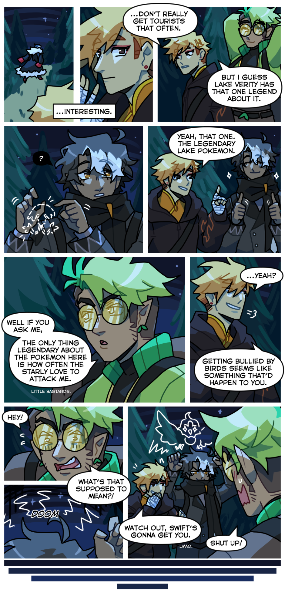 Also if you didn't notice in the previous pages, yes! I'd like to imagine that pokemon exist in the world sort of like animals. Magic animals. I don't actually want to think too hard on the lore on that but I think it's cute. :)