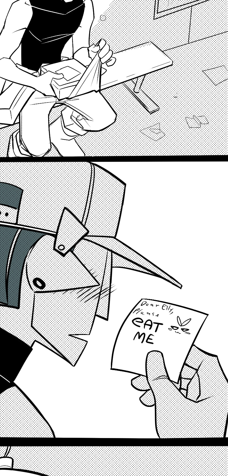 Anyway, since the octopus look like Rila, she couldn't help but ALSO TEASE ELLY (he's so stoic, its just always so fun to do that to him) she left him a note that could be taken one of two ways. LETS BE REAL, with the kind of fanfiction Rila reads, we (and Elly) both know what she was saying.