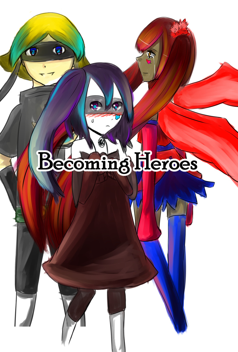 Here's the newest cover for Becoming Heroes! I actually like this one a lot more and it gives the series more flare! I also learned the hard way that I hate drawing Aiden's hair. Why did I give him this hair style? Well now I know what I have to practice...