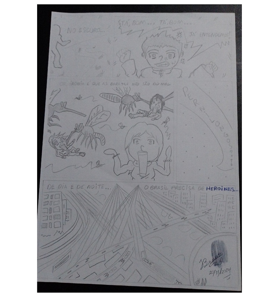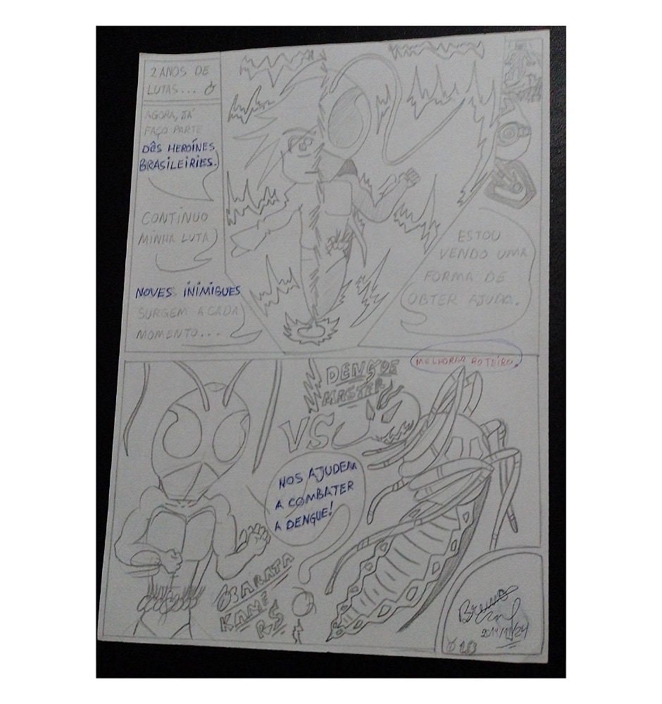 Ps: A história não menciona mas se quiser ajudar nosse Heroíne, precisa evitar água parada em qualquer lugar e objeto e seguir outras recomendações para evitar que venha nascer mais mosquitos da dengue.