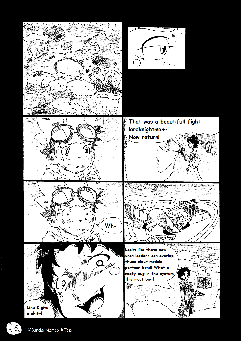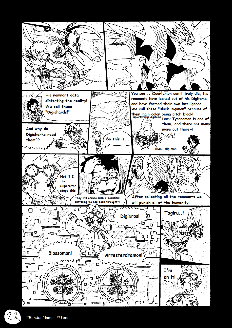 Its a fan continuation to Digimon Xros Wars Young Hunters Who Lept Throught Time. It takes place over a month later after the battle with Quartzmon. Tagiru and the others find out that Quartzmon is somehow still alive and now they have to hunt the digimons that cause his return. Alongside them they meet mysterious kid Yuki Miyamoto, an 11 year old carrying a brand new Xros Loader called "Super Loader". They also have to stop the evil team called "Digi-sharks" who use digimon in a illegal way.