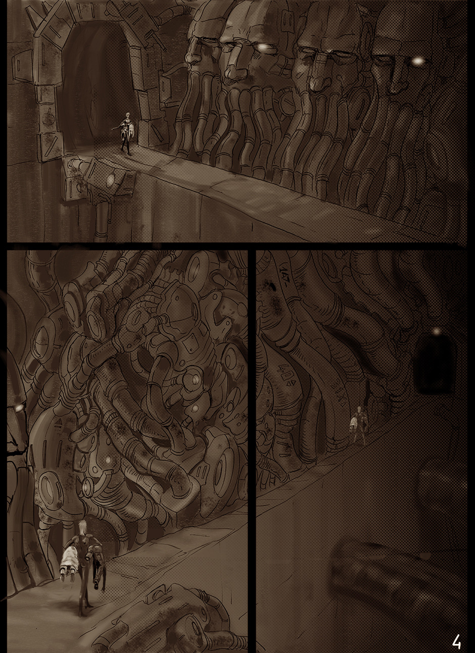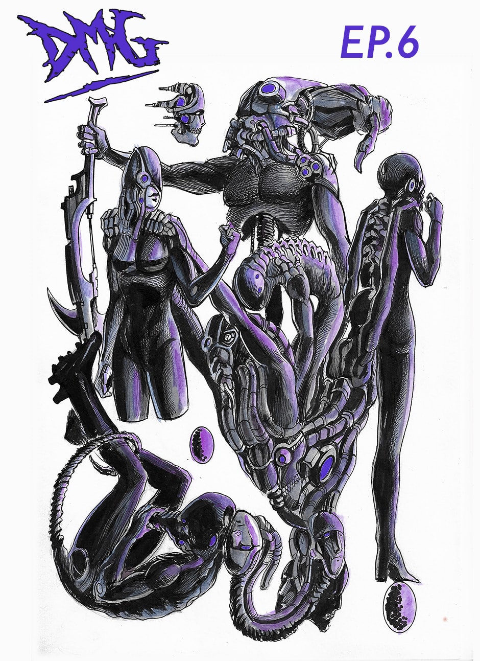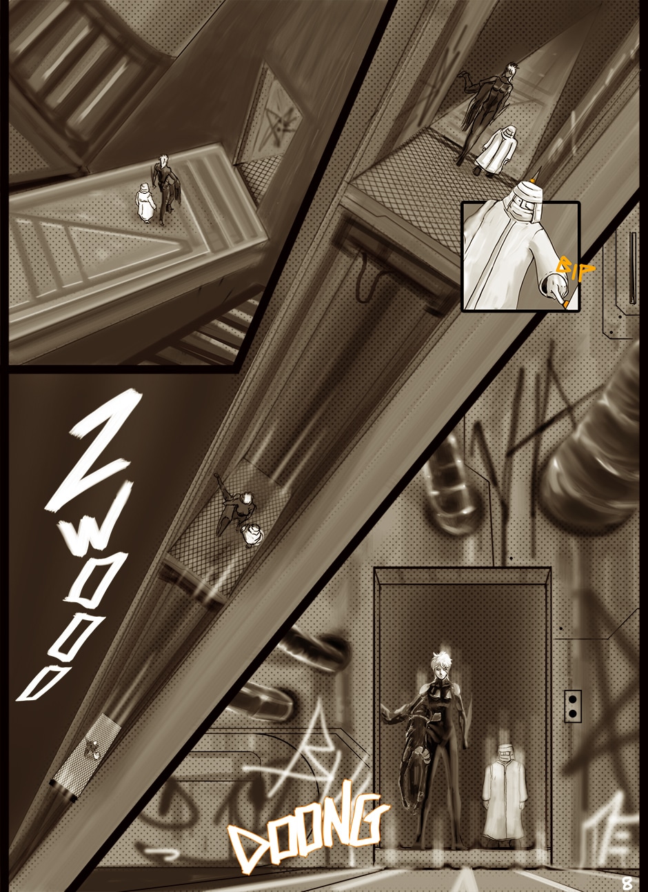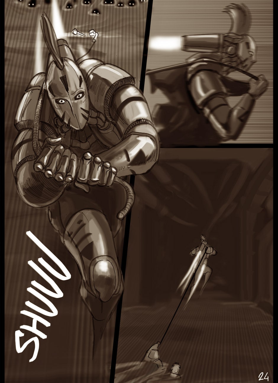 I cannot turn away from this feast of cyborgs and mechanics for my eyes! Ghost in the Shell, Predator, Alien all combined to treat us in this comic. I love your art. You actually tell your story through panels of storyboard. Fantastic work. I think I'm picking up on the main characters, though they can change their faces in a blink!