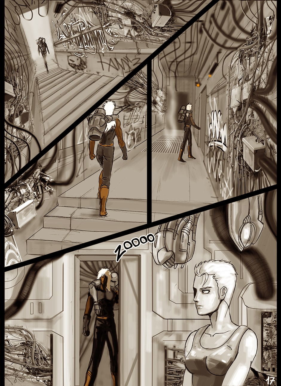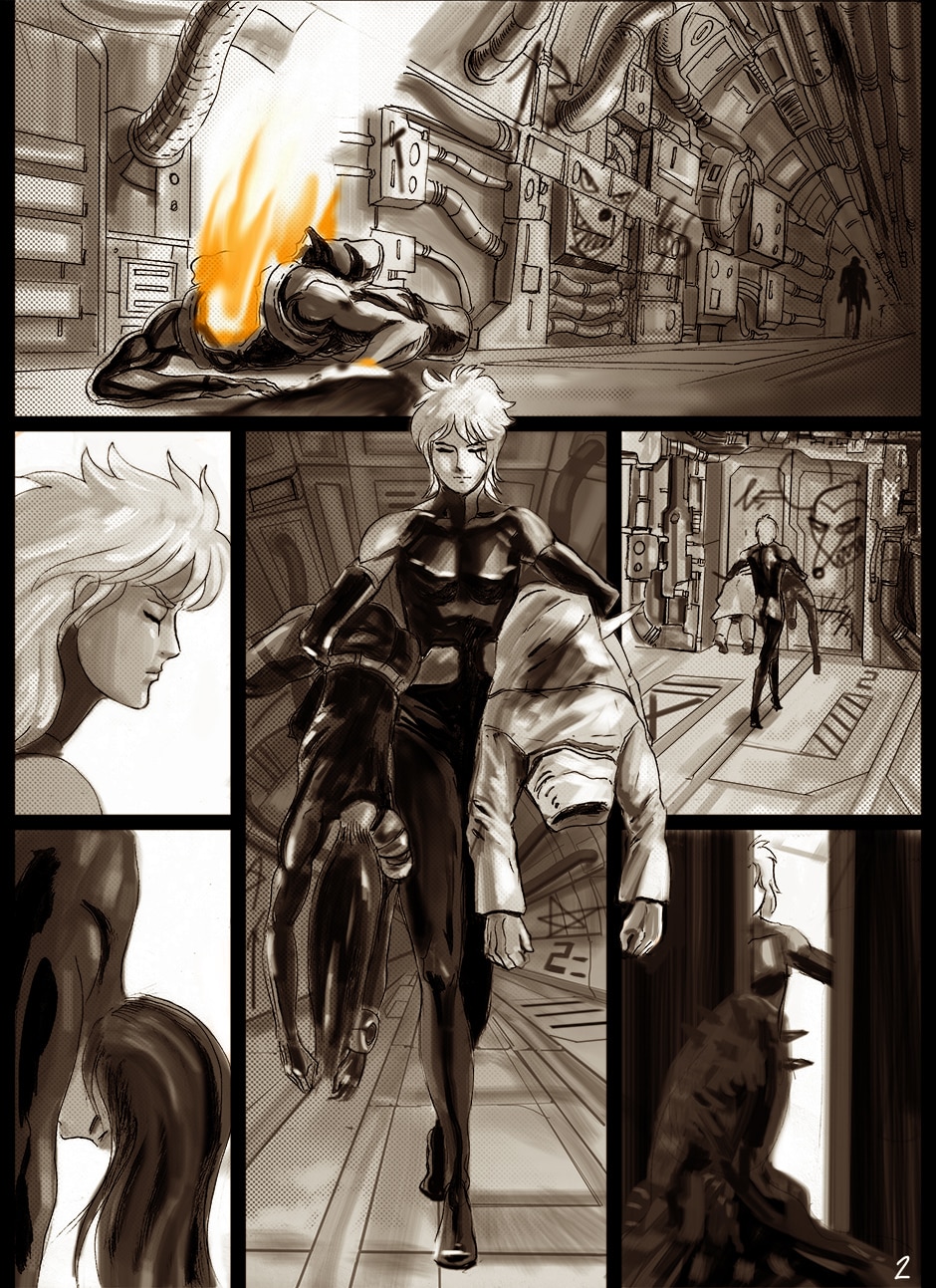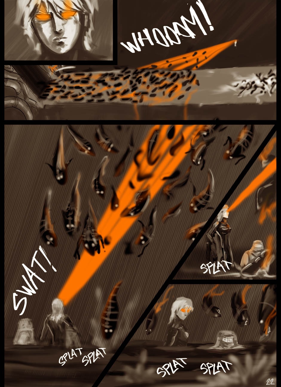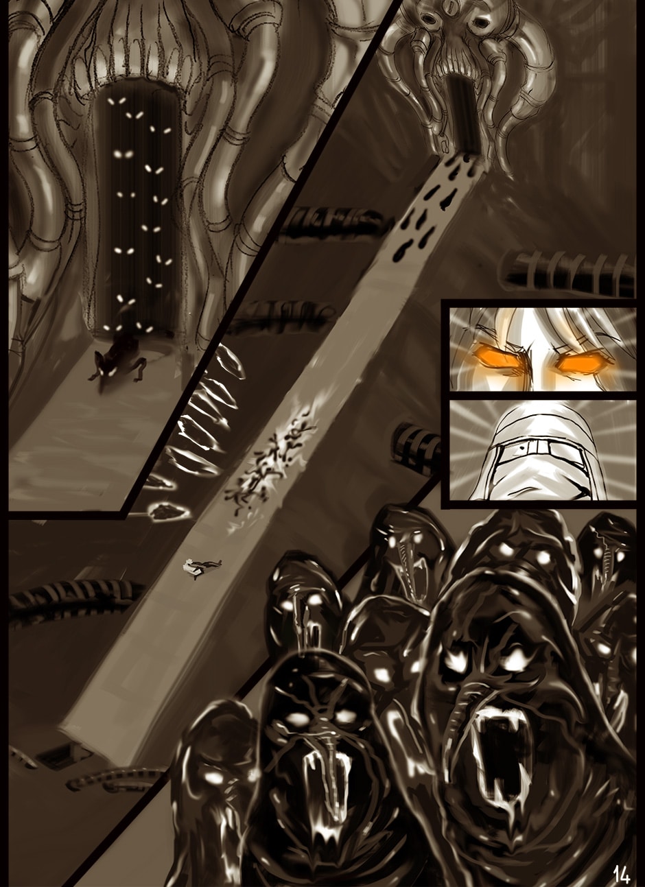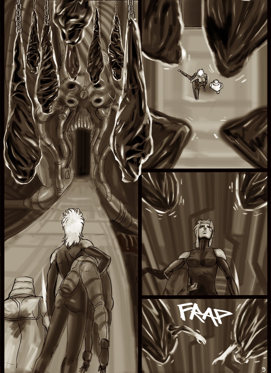 I cannot turn away from this feast of cyborgs and mechanics for my eyes! Ghost in the Shell, Predator, Alien all combined to treat us in this comic. I love your art. You actually tell your story through panels of storyboard. Fantastic work. I think I'm picking up on the main characters, though they can change their faces in a blink!