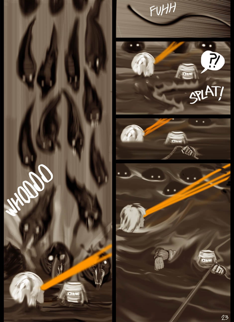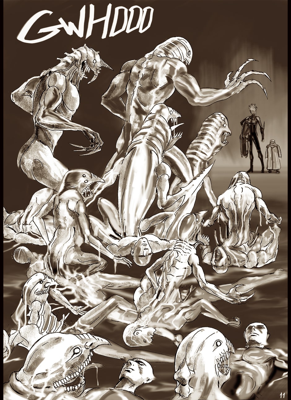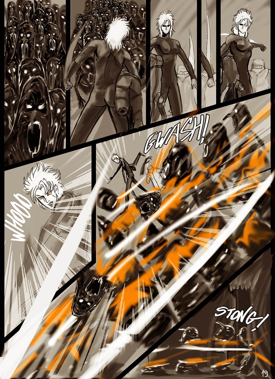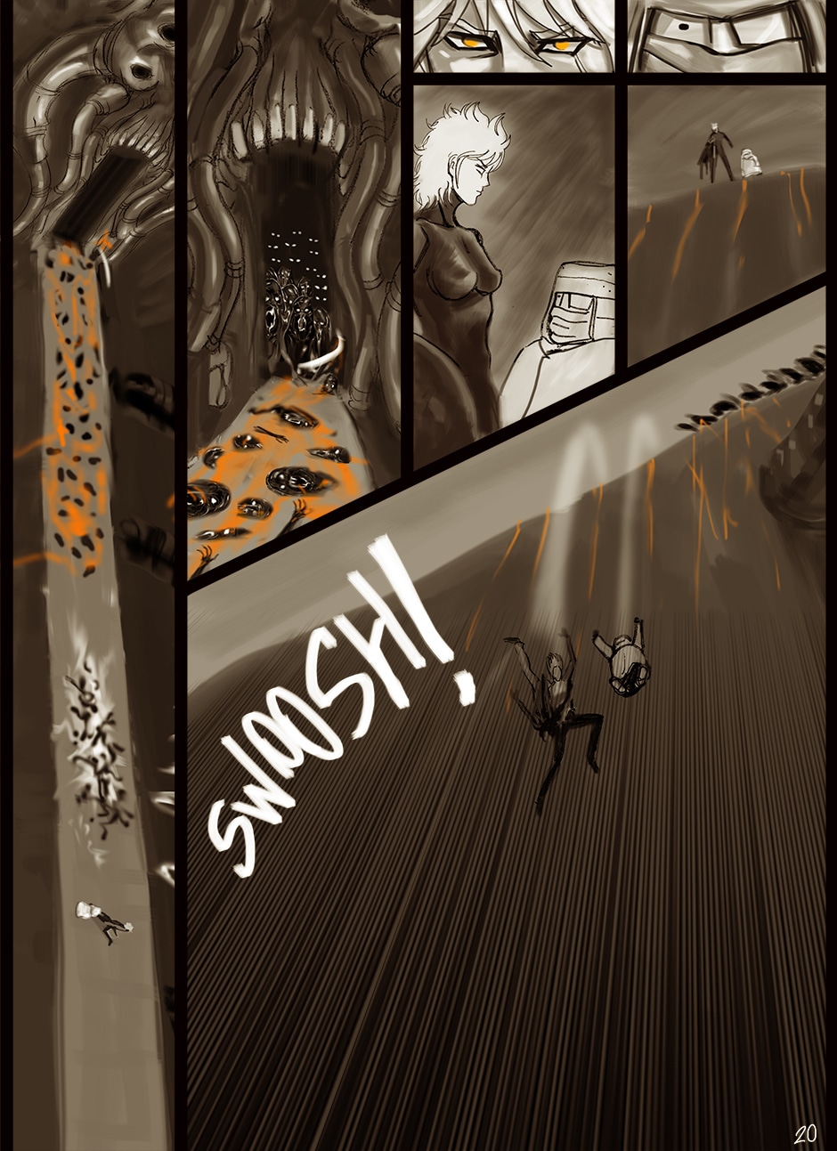I cannot turn away from this feast of cyborgs and mechanics for my eyes! Ghost in the Shell, Predator, Alien all combined to treat us in this comic. I love your art. You actually tell your story through panels of storyboard. Fantastic work. I think I'm picking up on the main characters, though they can change their faces in a blink!