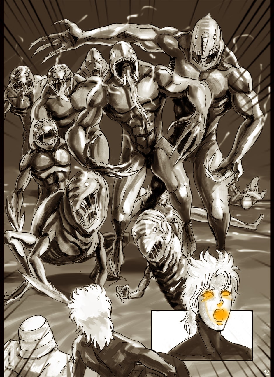 A new threatening from the underground city showing in front the small scientist and Duarte.