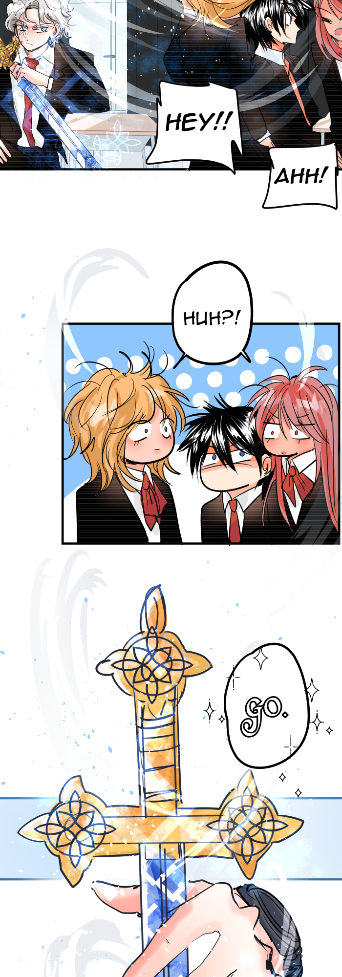 Aria is the female lead of a romance story while Akhi is the male lead of a magic story, he has the Wind Sword of the North. Somehow Akhi ended up in the same school and classroom as Aria and her crush Raven. These two MCs will cross their paths while living their own stories.