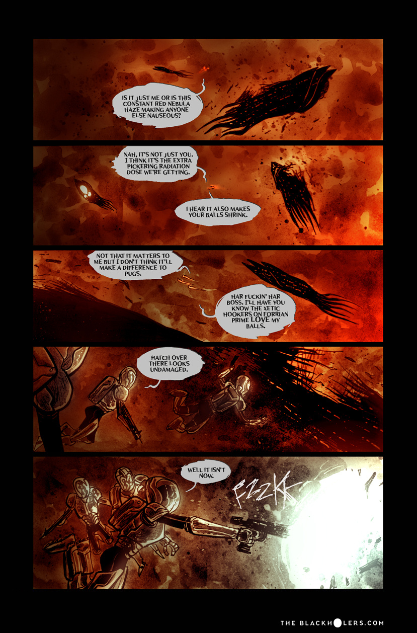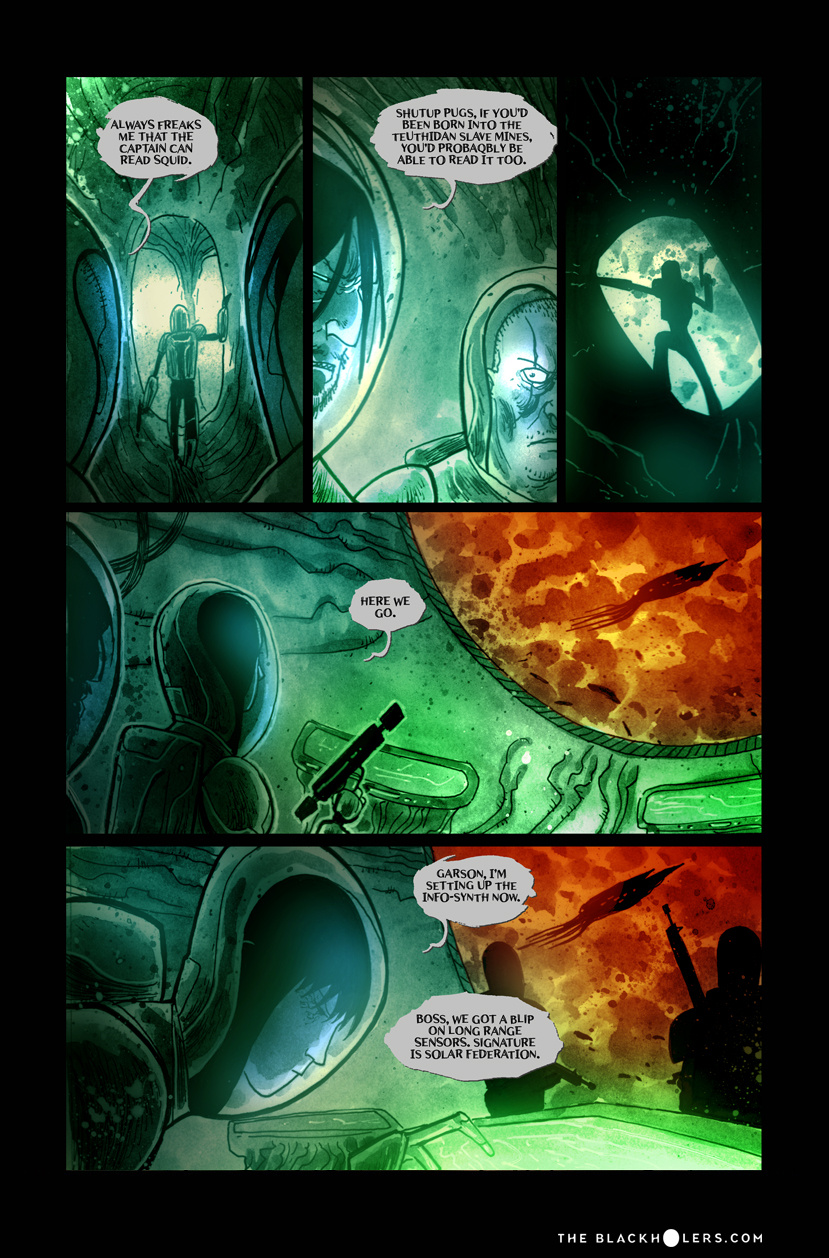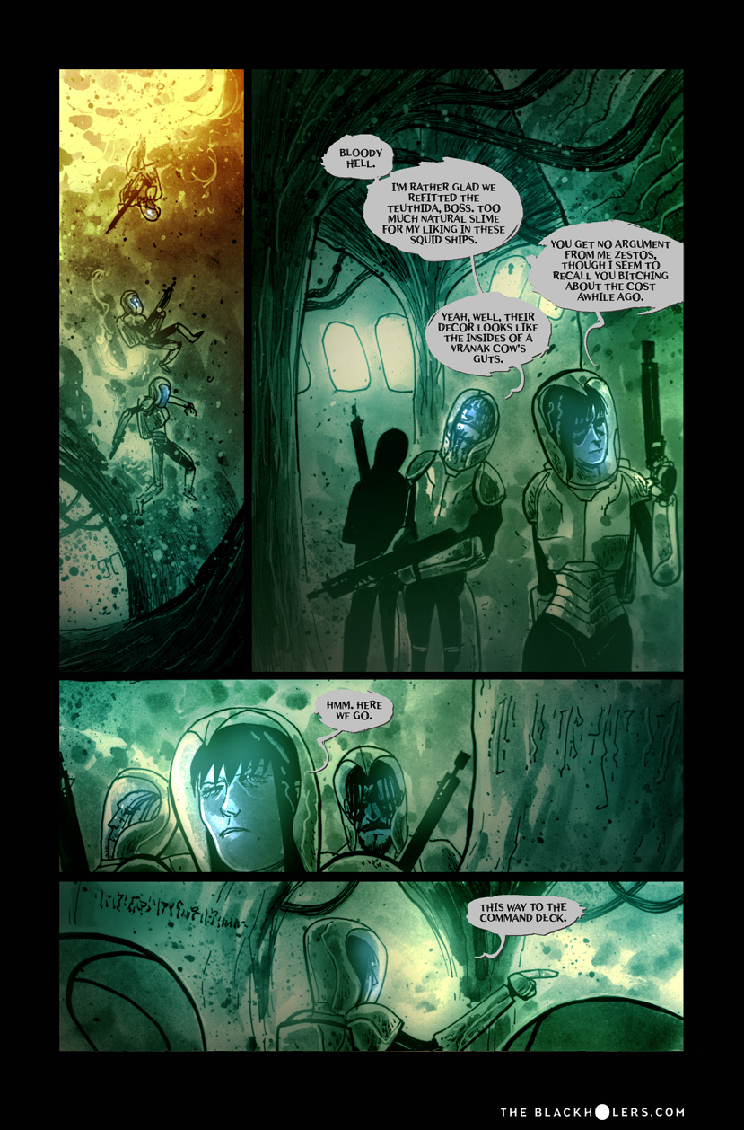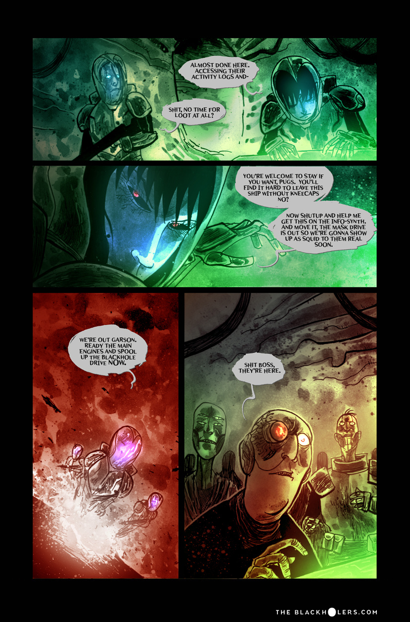 Furia, raised as a slave in the Teuthidian empire Drithium mines, tortured and blinded before she escapes, is on a quest for revenge against her former owners. Oh, and loot. Lots and lots of loot, as one of the most well known pirates or "Blackholers"as they're called, in the known galaxy. But war is brewing between old foes and Furia and her crew may have to put their lust for revenge on hold as they're caught up in a clash of empires and try to make a buck along the way.