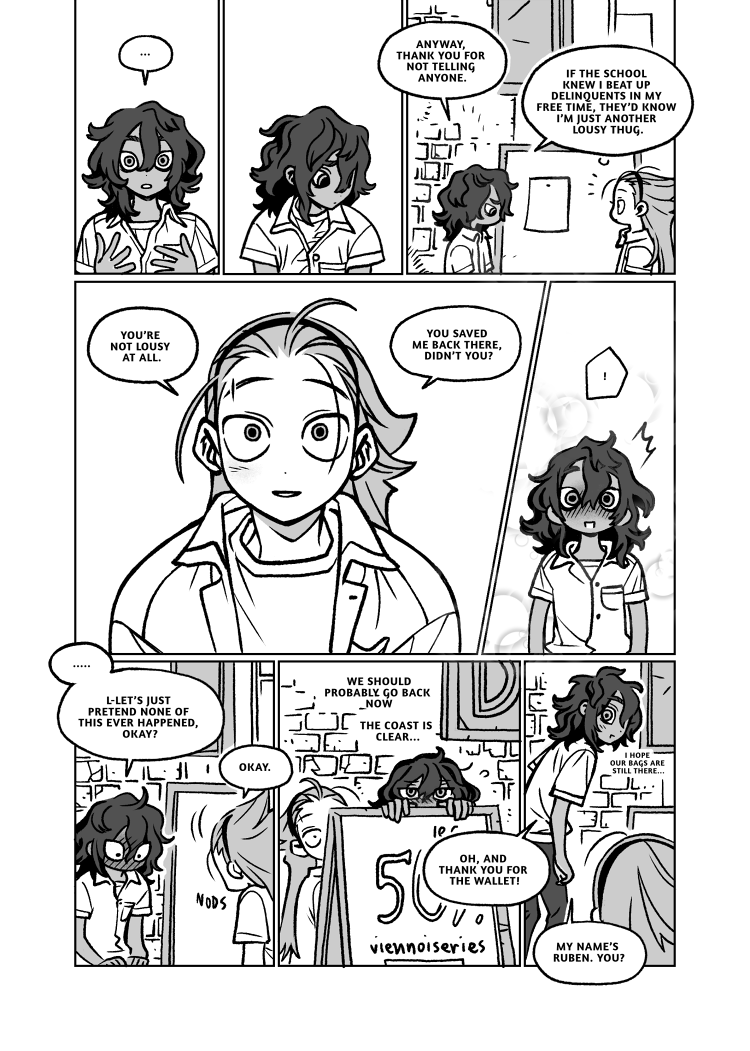 Ruben can't sleep, and it's starting to impact his mental health; turns out the only way he found to let out some of that tension is by getting into fights with the town's delinquents! But one night, his classmate Dominic accidentally catches him in the act... Now Ruben has to make sure Dominic keeps that secret between them, and more importantly, finds a way to finally have a good night's rest!