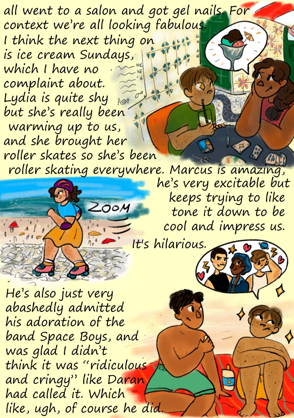 I love drawing all the panels with Tomás and his fam, it's just so colourful and cute! Idk if you can tell but have been trying to make the Kingdom of Water look as Portuguese as possible, and that has also been giving me joy.