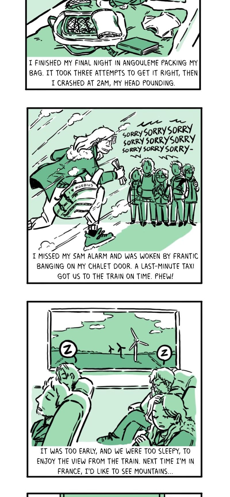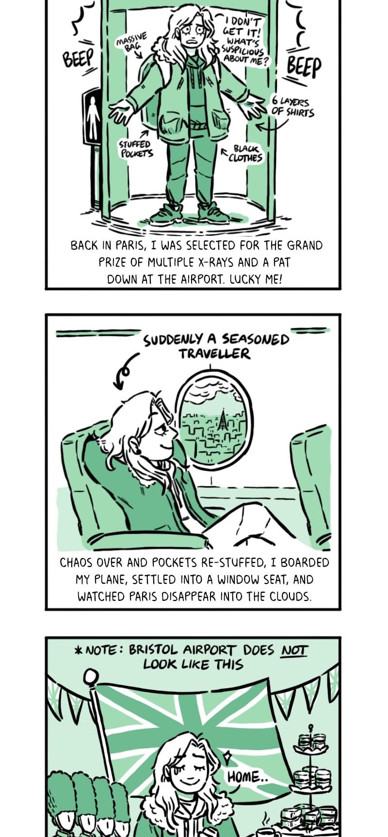 A short comic about my first time travelling abroad, going from Plymouth, UK to France for the 50th Festival international de la Bande Dessinee Angouleme - also known as the Angouleme Comics Festival 2023! This year I was happy to be among a small number of comic creators who were invited from around the world to enjoy the comics festival by the UNESCO City of Literature Angouleme. I am thankful to them and the universities of Plymouth and Exeter for selecting me!