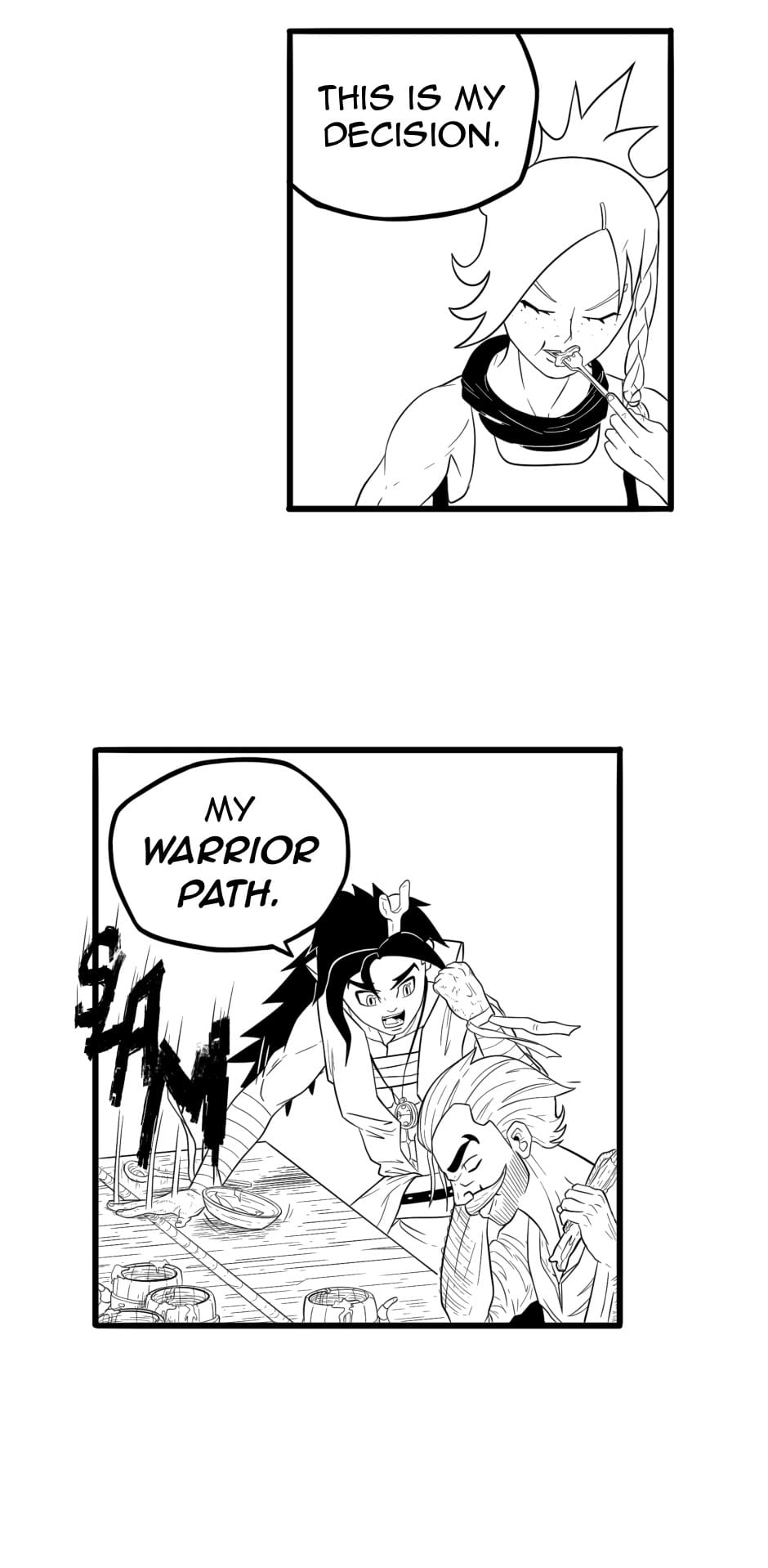 Love that sword!! It pays to have an uncle who's a blacksmith! Great art as always! :)