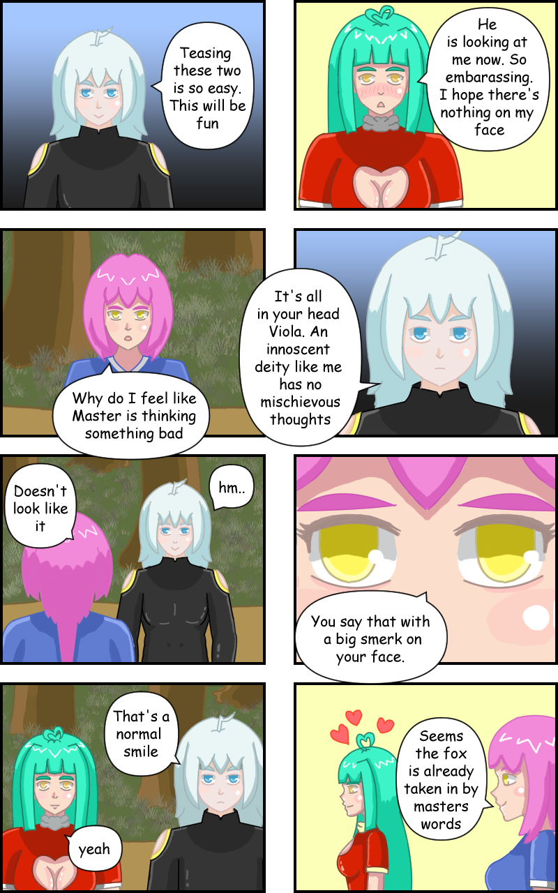 The first singularity in the universe Quinn took a humanoid form millions of years ago. Bored out of his mind , the lonely singularity decides to use some of his energy to jump start an event in the universe which causes the original species of the planet, dinosaurs to be wiped out and a stronger species to come into existence from the combination of his energy with primitive organisms creating beings capable of using magic. On his adventure he falls in love with a native fox lady Evalyn.
