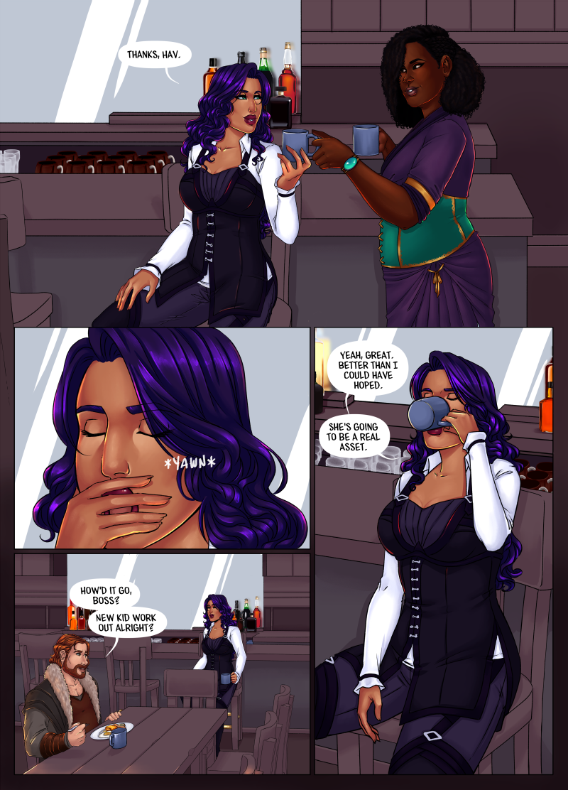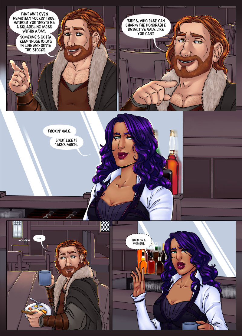 Do the end justify the means? The crew of the Crow & Lyre tavern absolutely think so. Sometimes when the system is stacked against you, you break the system. Each crew member is equipped with their own special abilities and they’ll have to work together to get the job done. Tassera leads the crew and keeps the nosy Detective Vale from getting too close. Except, they have a history and while Vale may not get close to solving the case, could he be getting too close to Tass?