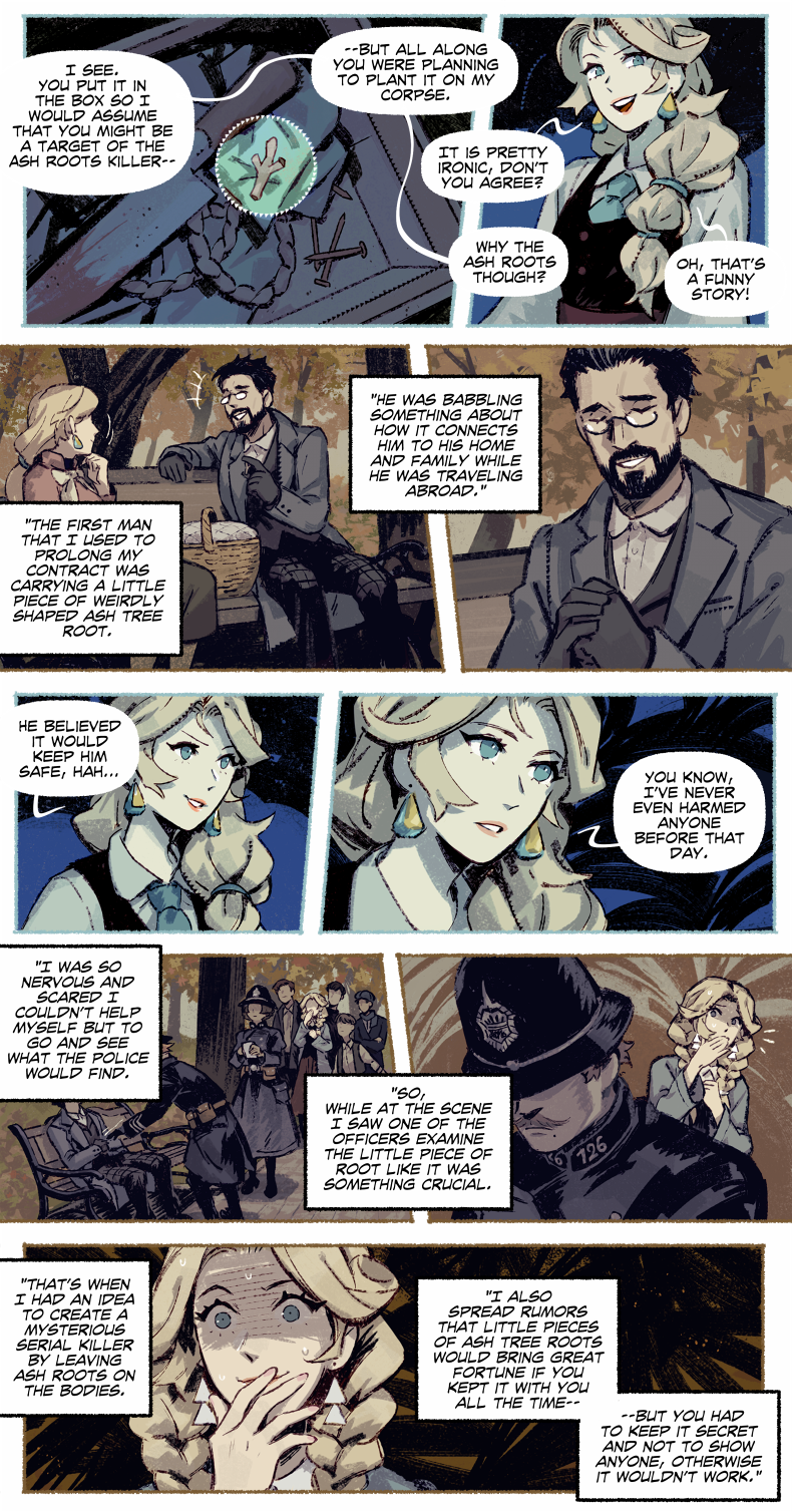 HAYDEN’S NOTES is a magic realism mystery with horror elements, set in the fictional country in the first half of the 20th century. The comic’s told in the non-chronological order revolving around Hayden Carter, immortal (by accident) gray mage, pursuer of knowledge and a witty nuisance for everyone around.
