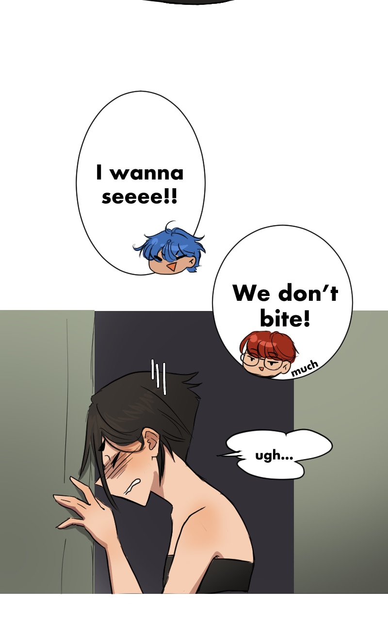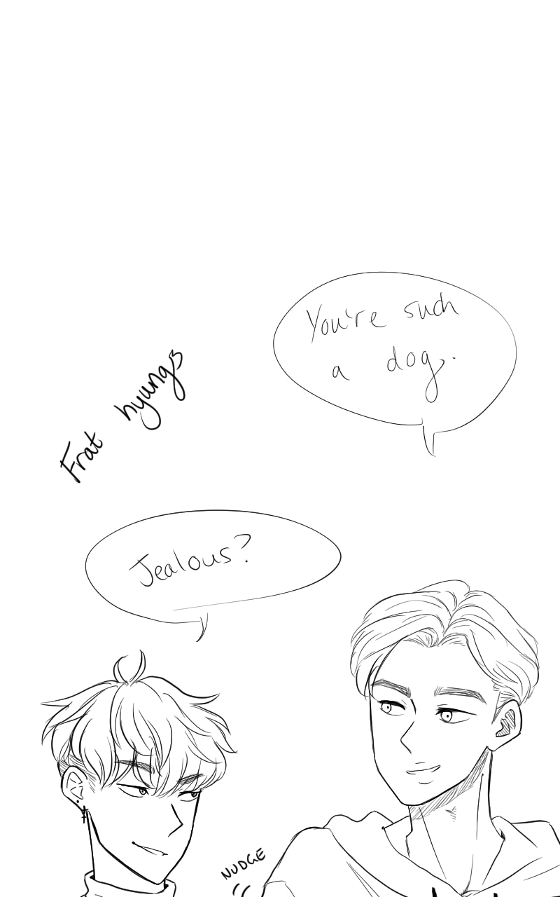 rn I'm trying to get tapas up to date with webtoon. I combined two chapters into one here, hence the jank. Bare with I'm going to try and reformat the next ones so they fit better but,,,, do I really wanna look at my old art that much? No
