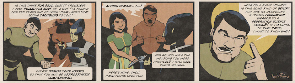 Hunted by Federation warships, Quetzal Brody must find a way to delivery her stolen cargo while keeping her crew in one piece.