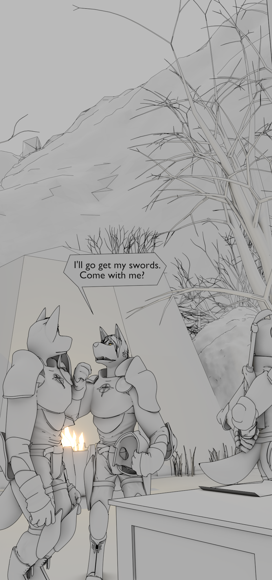 I found the text object in Blender and finally figured out how it works with a little tinkering as is my usual method of learning. (Go away, tutorials! No one wants you here! If I can learn without a tutorial, its more fulfilling for me) So with that and making the "text bubbles" float in the 3D space and locked with a modifier that makes them face the camera (you); I no longer need Krita to paint in the text and bubbles. :D -uninstall-