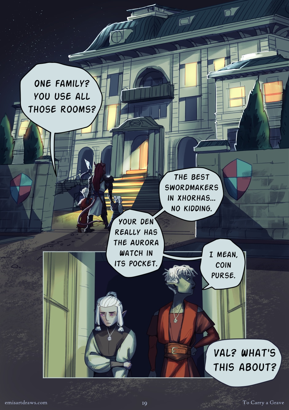 Wow, Val really does seem to live that noble life. From a family specialising in weapon creation, too. No wonder the Aurora Watch guard brought them here instead of to a holding cell.