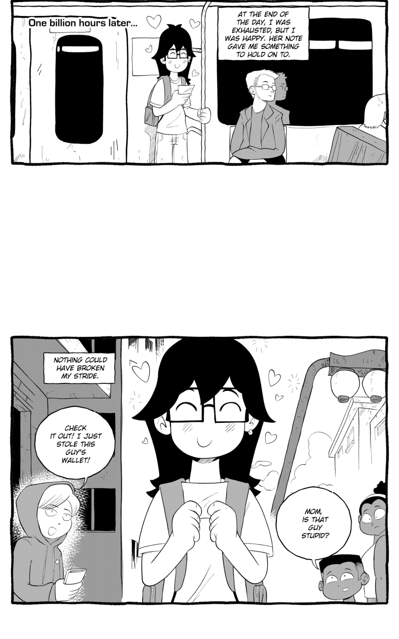 Peter is just a regular dude, but he quickly finds out that when you get out on your own, things can get pretty crazy. In this Rom-Com/Slice of Life, we'll follow Peter on his journey to becoming a comic book artist and, hopefully, an adult in the process. Will Peter ever win the love of his crush, Short Girl? Will his brain ever shut up? Find out in: Regular Peter by Pedro Corin.