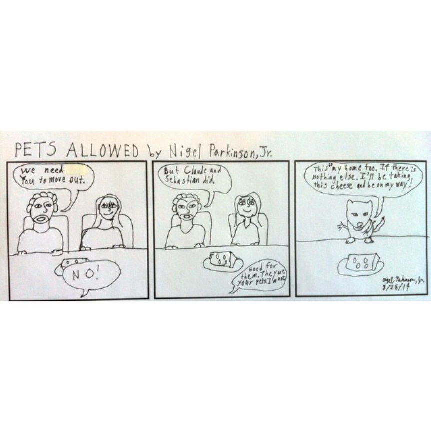 Hello, my name is Nigel Parkinson, Jr. I created Pets Allowed where imagine there were normal pets, but later pets were able to talk and live different lives then they did when they were pets. Pets had to work and find places to raise there family. Pets Allowed, you will see pets as they were and pets where they are now. Pets talking to other pets and pets talking with humans.