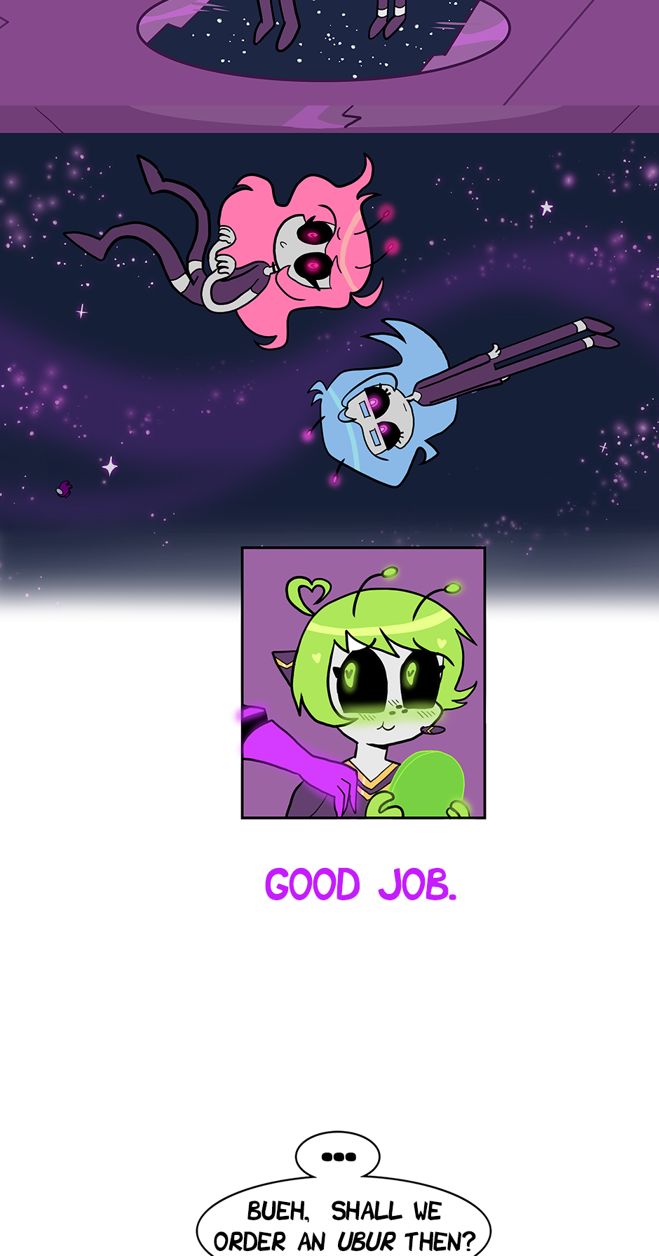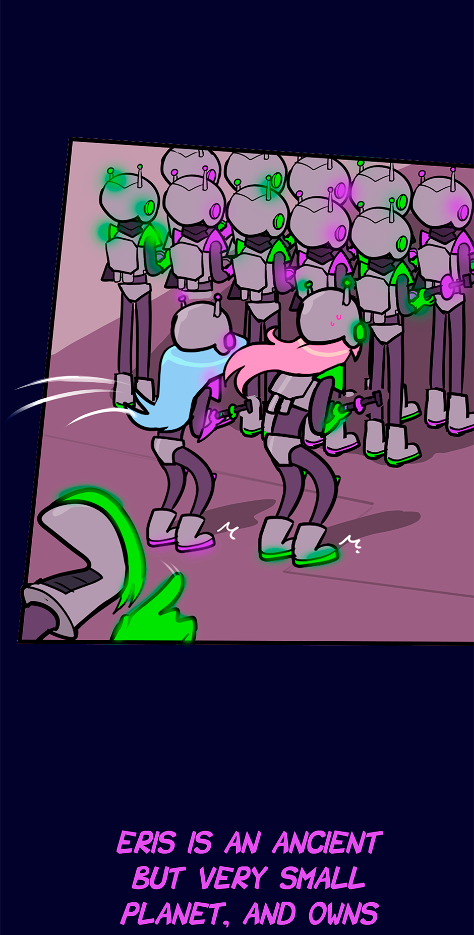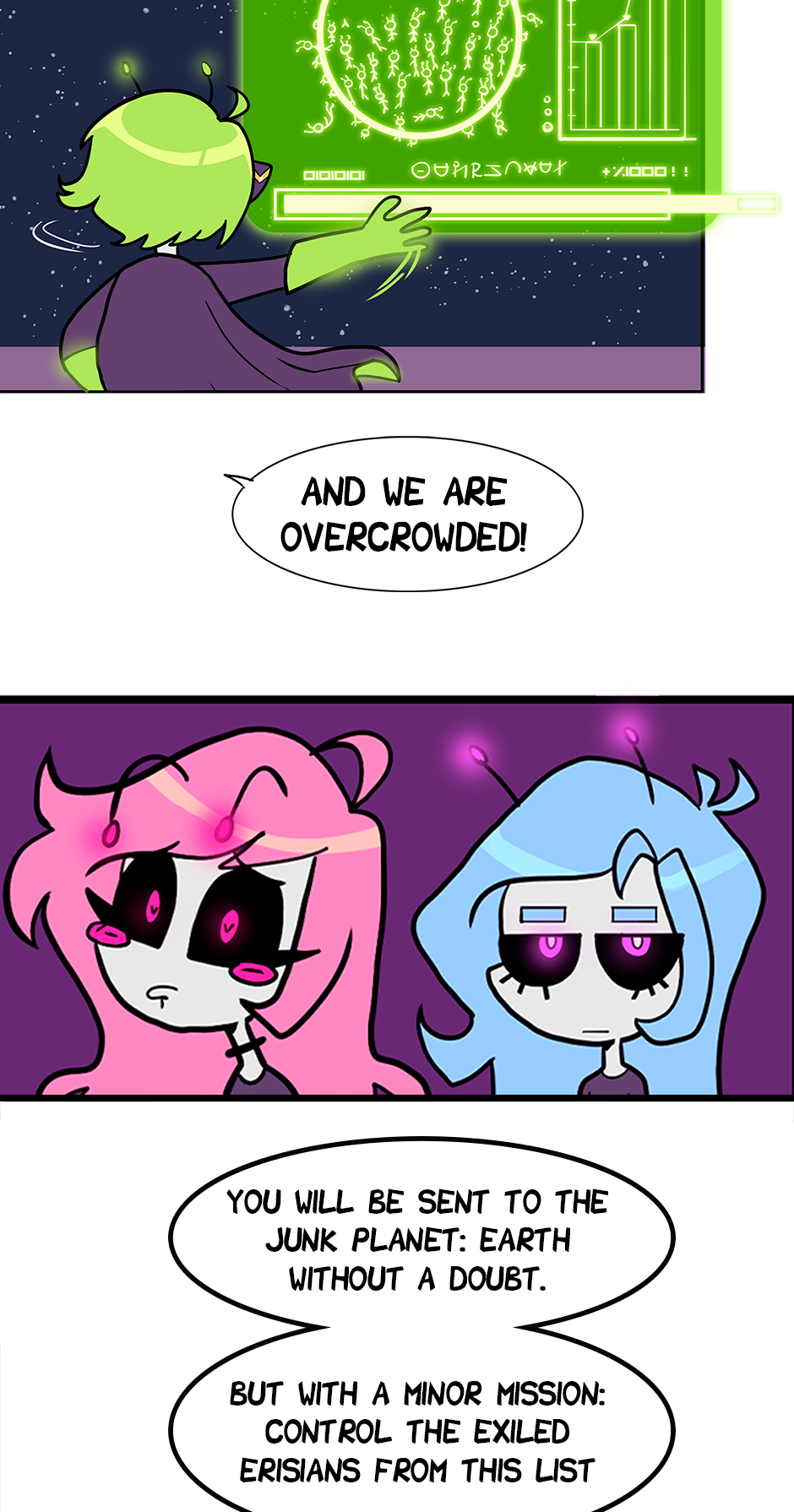 Aliens? Yes! Romance and comedy? Why not? They are among us, but nobody knows, not even the aliens themselves, from the distant planet Eris, do care. Cris, a college student with an interest in aliens as a hobby, and her neighbors, the explosive Sidney with her soft husband Celeste, witness the strange behaviors of the recently transferred sisters, supposedly named Nadia and Ursula. Why do they eat rocks and never go to the bathroom?! There are very strange people in this city.