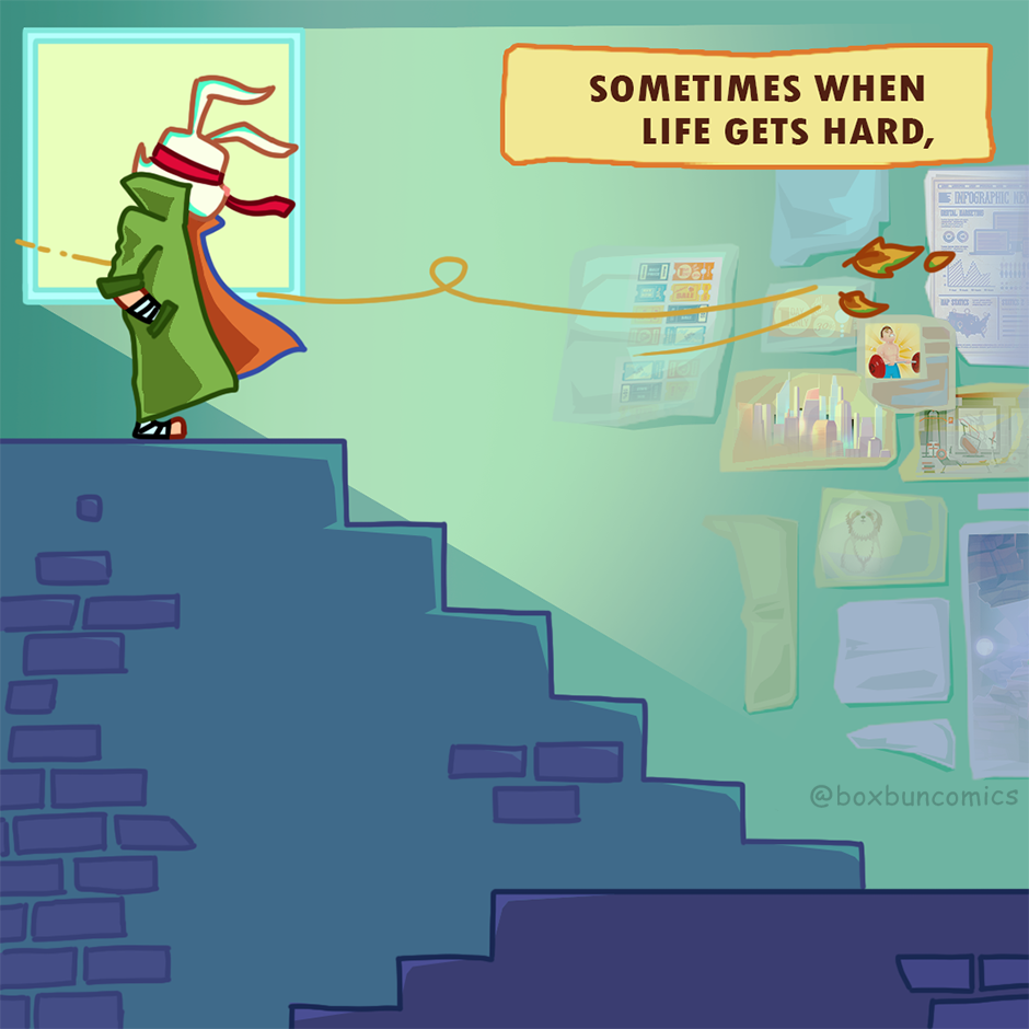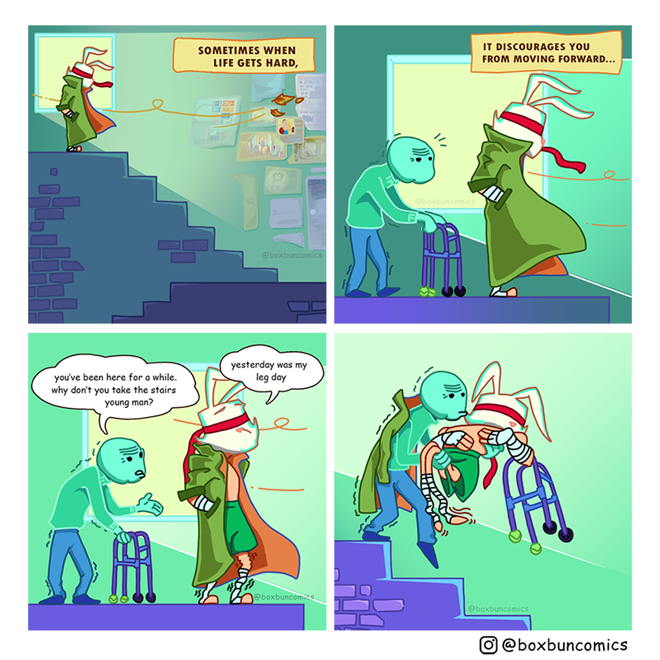 Boxbun: "Life is full of ups and downs. But going up isn't always the hardest thing to do."