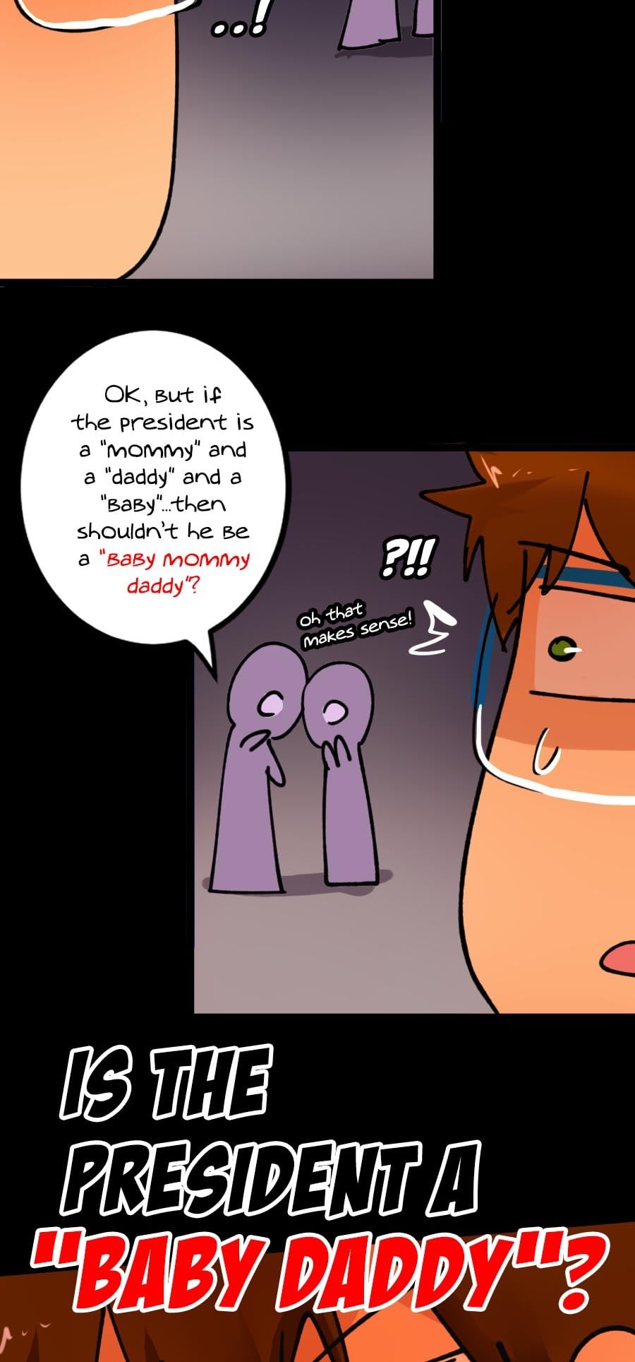 This officially ends the Confrontation Saga! Would anyone buy BABY MOMMY DADDY sweaters if I made any? Also, this saga was so fun to create! Did it accomplish anything? ...I DUNNO. The more important questions are...Has More Chaos been added? YES. Are the readers laughing? I HOPE SO. That's all that matters. Oh also the points... they matter too. See you in the NEXT SAGA