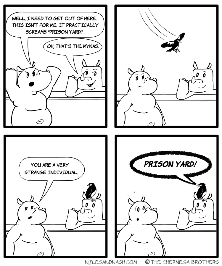 Niles and Nash is an all-ages gag-a-day comic strip about weird and wonderful animals trying to get along. But watch out -- this place is a zoo!