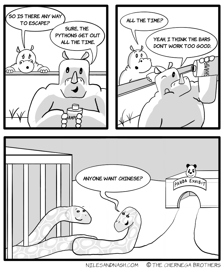 Niles and Nash is an all-ages gag-a-day comic strip about weird and wonderful animals trying to get along. But watch out -- this place is a zoo!
