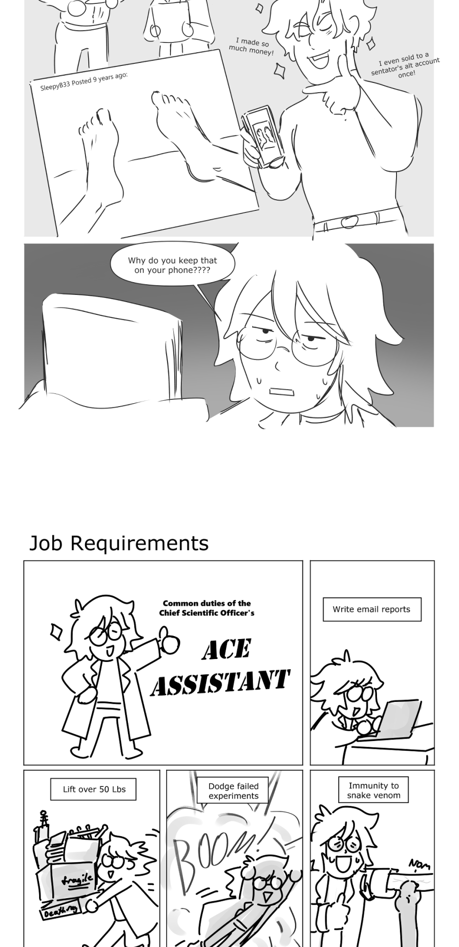 Ainsley Allaway(Ace) is the assistant to the most diabolical mad scientist in the world, Dr.Hyacinth Constantine(Doc) and finds themselves the target of Doc's superior Vieno Belvedere(Boss)'s attention. Can Ace navigate their research between these two superpowered villains? Does Boss have a crush on Doc? Is Ace hiding some villainy of their own? Is this triangle a...love triangle? Find out in this shameless excuse to draw queer villains falling in love and being unhinged on a daily basis.