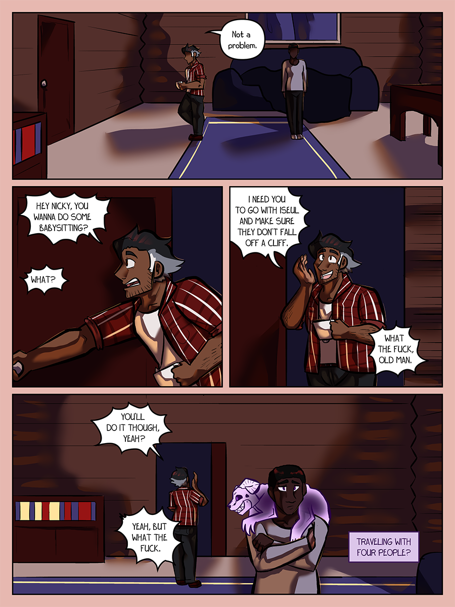 End of Chapter 2! Hopefully the slightly later weekly update is made up for by the extra page. I didn't want to break up the flow with regards to the chapter ending.