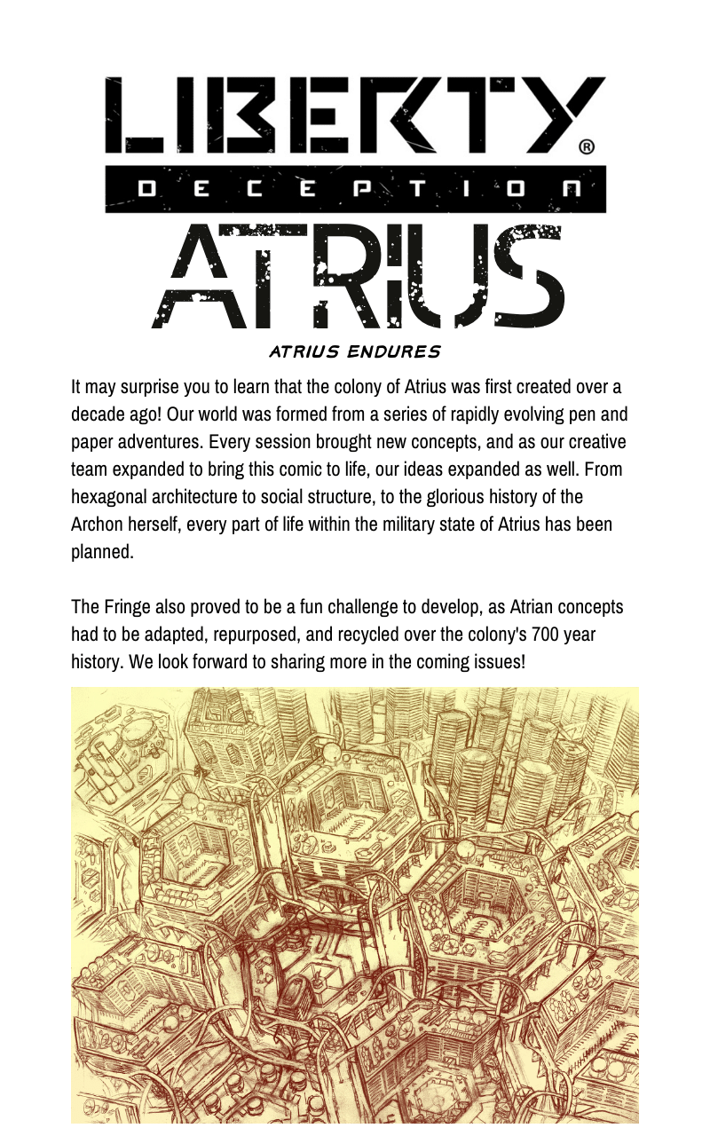 The shining city of Atrius protects its bustling Citizens from the unbridled dangers lurking beyond its walls, or so the government would have us believe. But when a government propaganda actor is sentenced to secret execution, his escape sets about the adventure of a defiant group of exiles and his first experiences beyond the safety of Atrius’ walls. With his city and home behind him, our hero turned conman must survive the lawless, post-apocalyptic expanse of The Fringe.