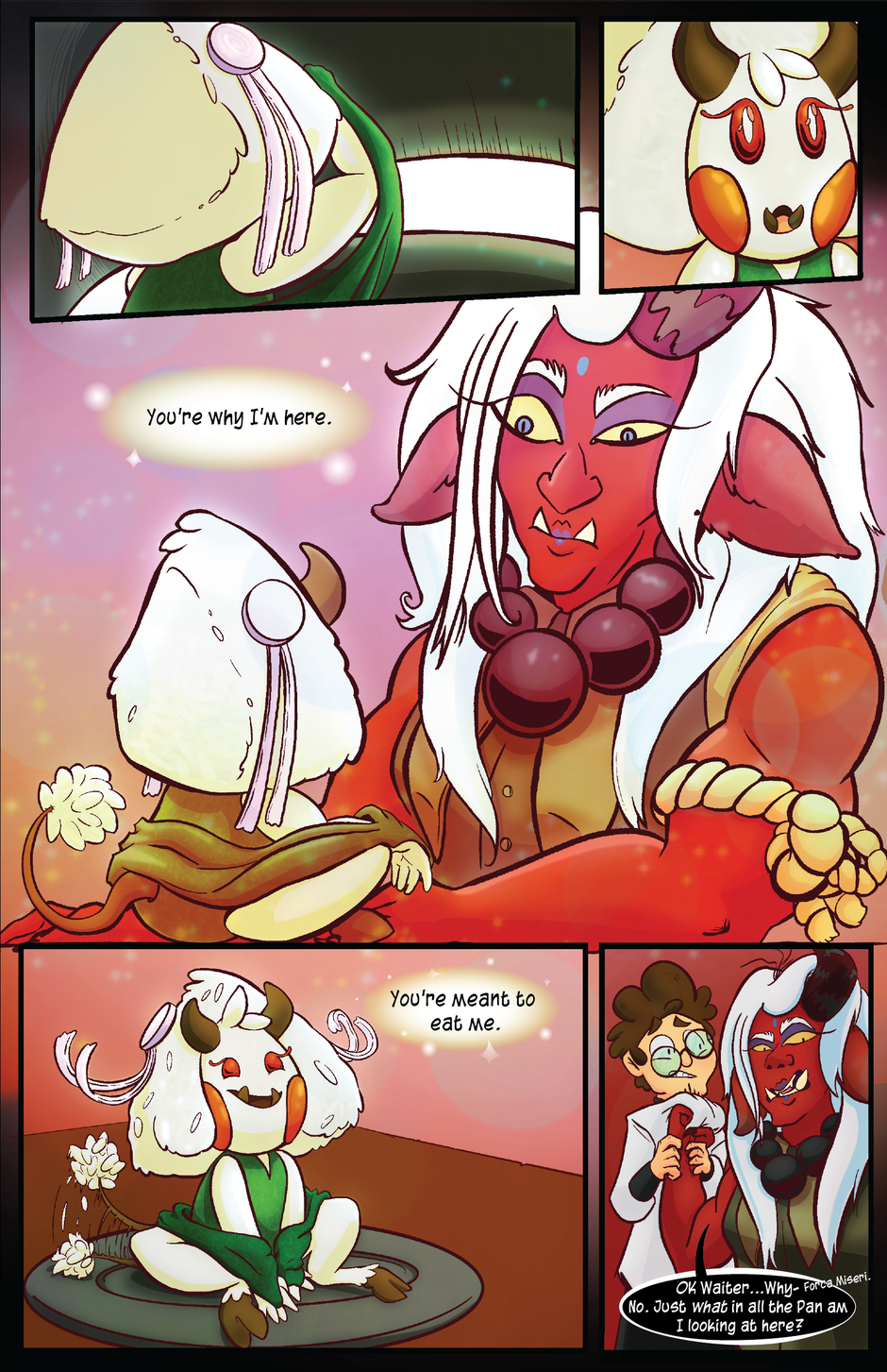 This story follows someone who is both! The story of a naive, cheerful monster trying to figure out who they want to be in a world of conflicting communities. Its got Cute Monsters and Food puns.