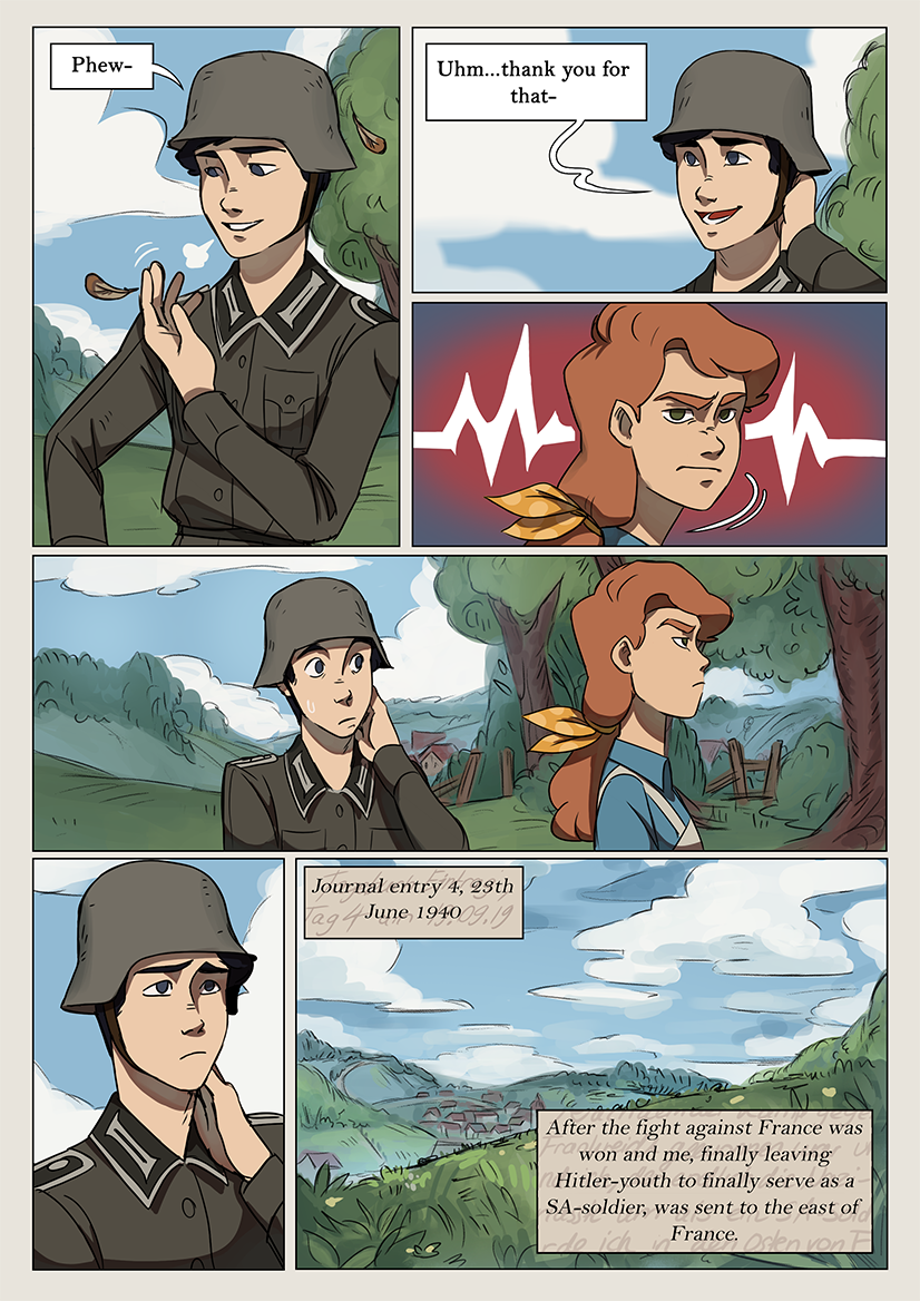“This will just be an easy walk in the park”, at least that’s what Markus thought. 1940 during the second World War, Markus Weber, a German soldier, thought he’d only have to guard the country in the east of France until he crossed paths with an injured French soldier. Will he help the hurt man or will he report him to the SA? He took a risk that would soon change his life and the perspective of himself. He’ll need to survive in a world of war as he watches people's lives being affected by the global conflict and would finally see the reality of it, which he had thought was necessary for the world. The country he had faught for would soon reveal it's cruelty that had been hidden from him.
