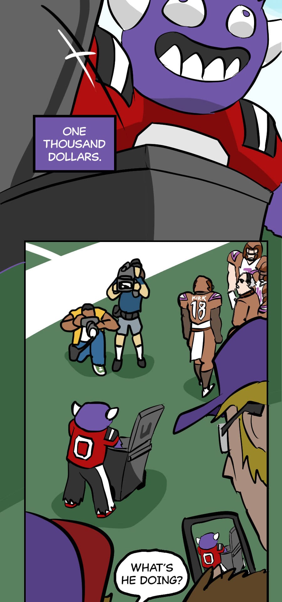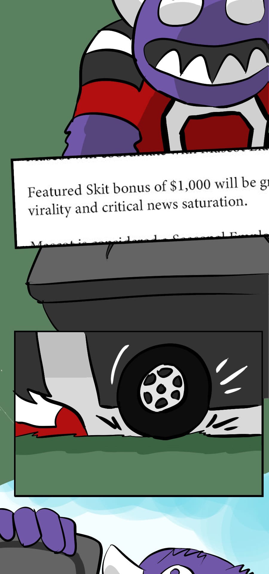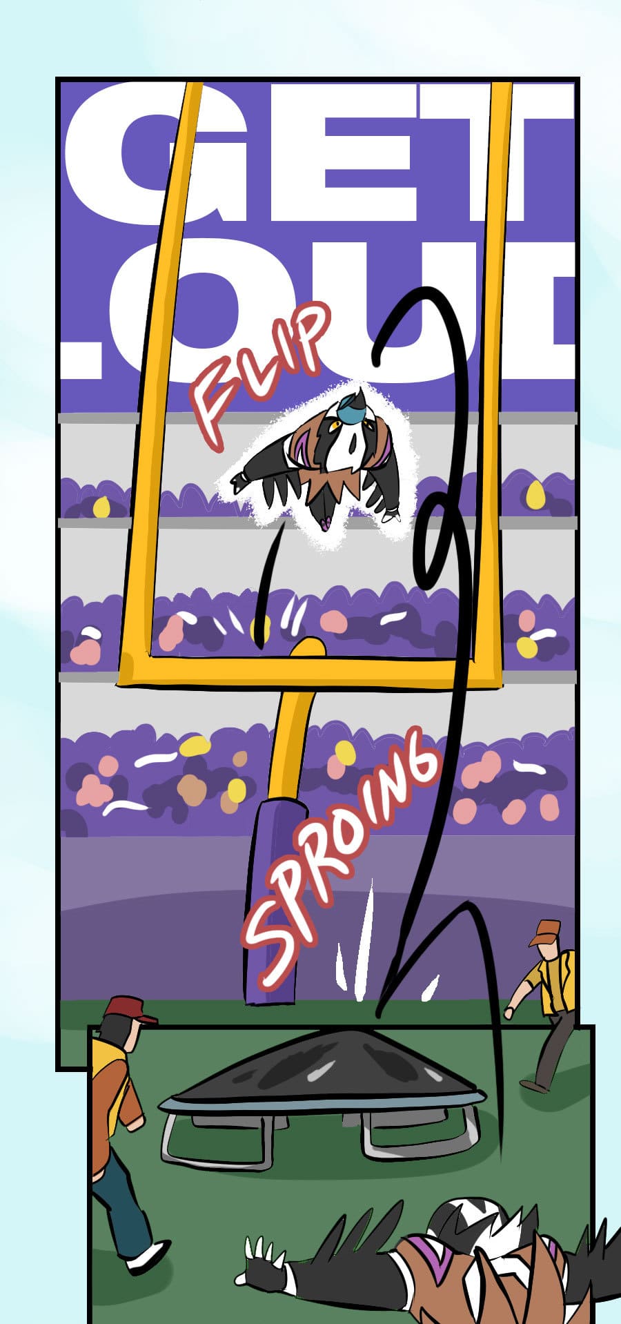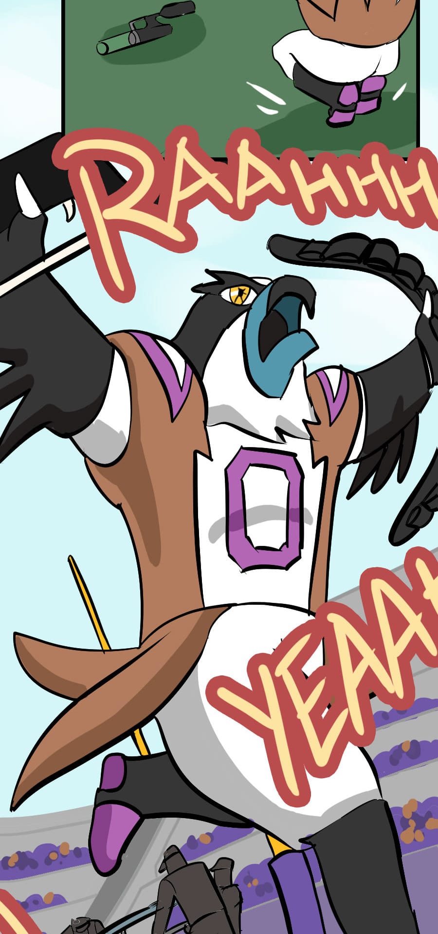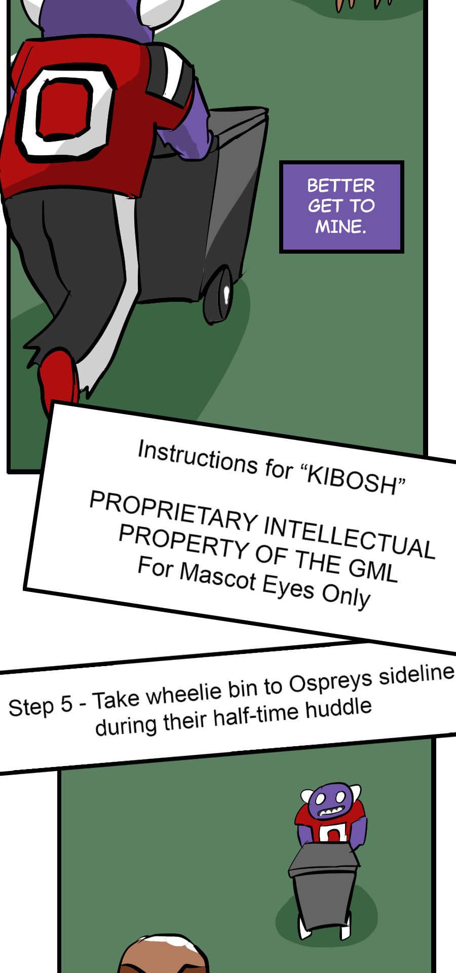 Roo's gig as wacky mascot "Kibosh" might be fun, but it’s riddled with hazards: rowdy fans, unpaid hours, dangerous stunts, and no benefits! Fed up, Roo organizes a mascot union and immediately draws the wrath of his corporate employers. Witness his journey from exploited clown to workplace activist in this Shonen-style dramedy. Even the most absurd of jobs demands dignity, and especially healthcare. Episodes every 7-10 days!