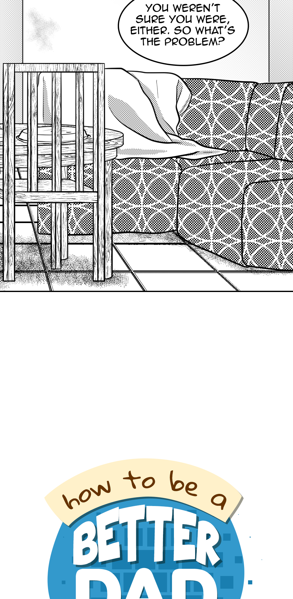 When Carl comes home after being fired from a job for the nth time, he finds a little girl waiting there who is supposedly his daughter. He isn’t confident he can raise her, but he just can’t turn her away. So with the help of people around him, he takes baby steps to be able to raise her. In the process, he rekindles his love for illustrating, learns to see his estranged wife in a different light, and realizes how it just takes small adjustments and people around him to make life good. Updates every Monday.