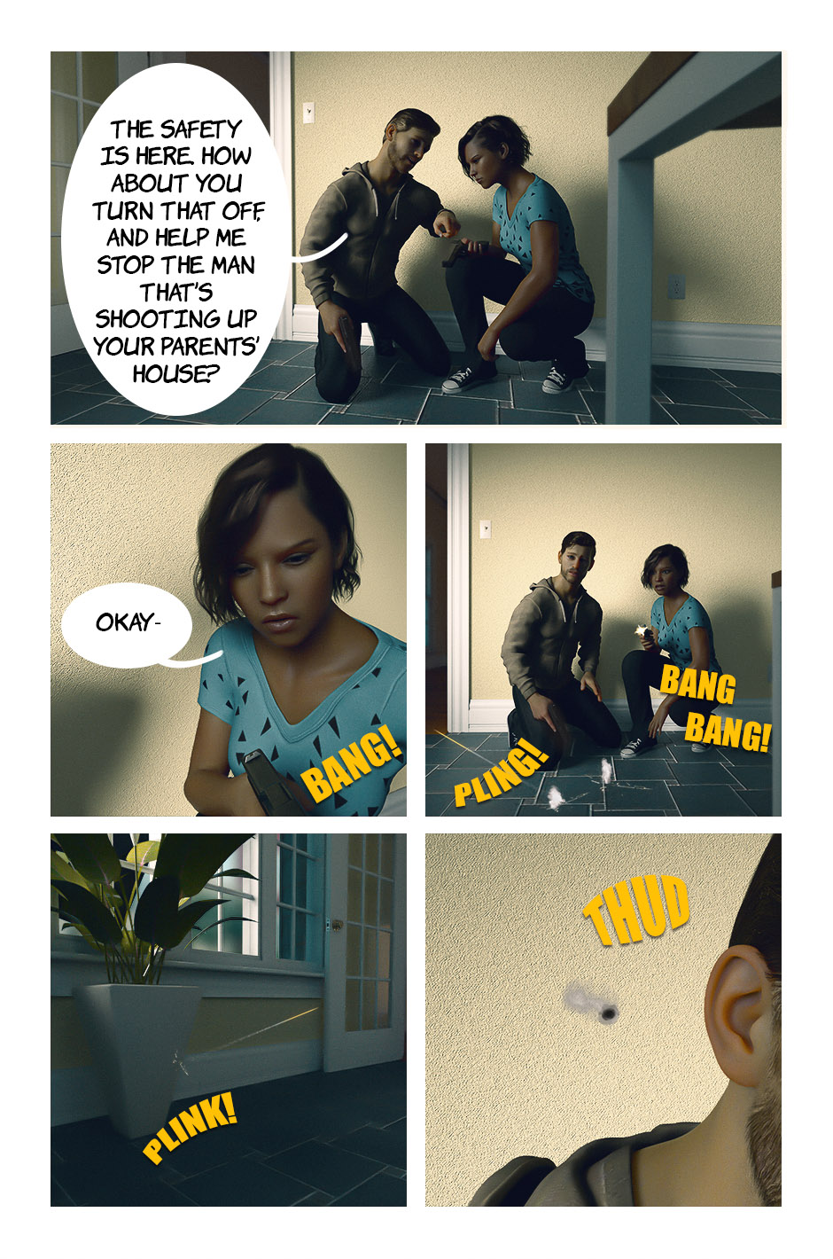 I had a lot of fun doing the gunshot VFX in Photoshop! I don't think enough movies/shows take into account the dangers of ricochet.