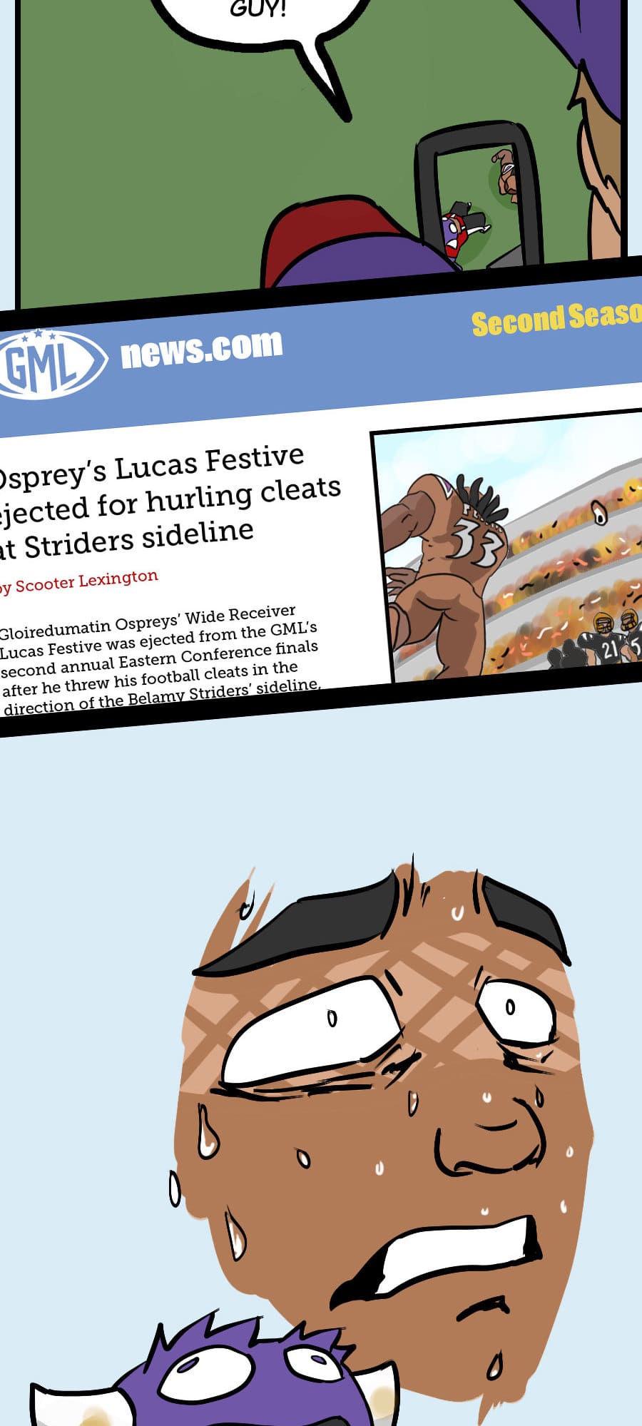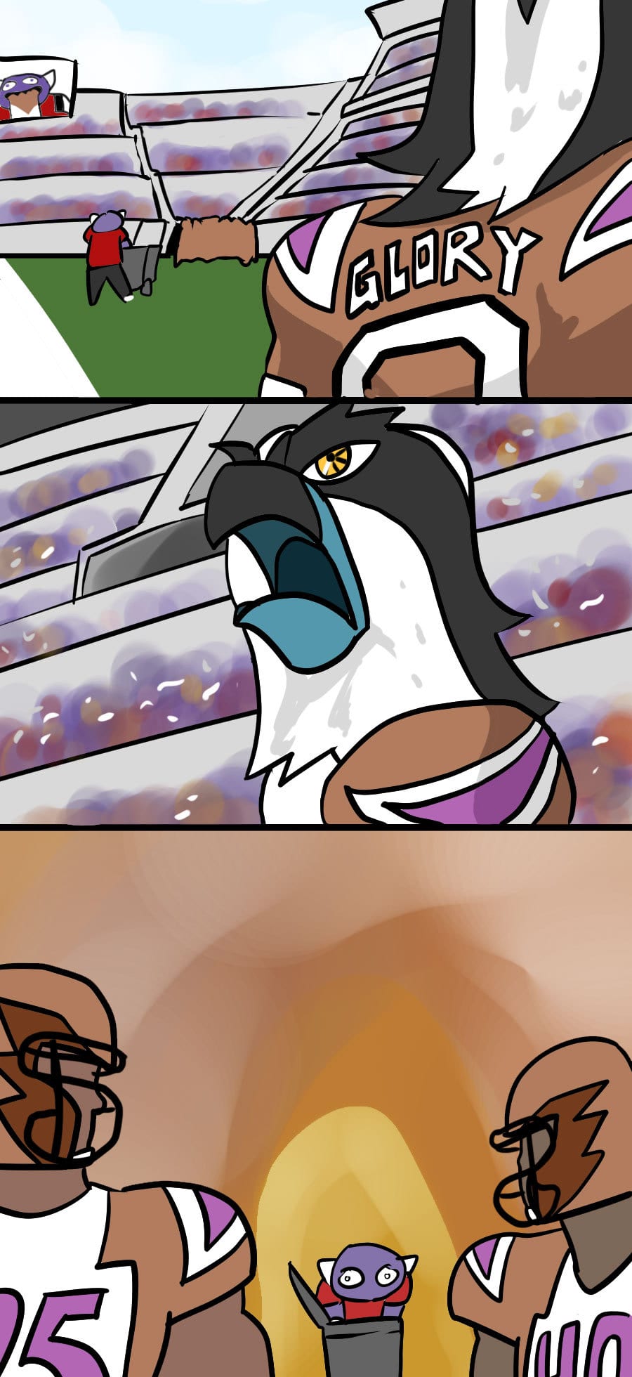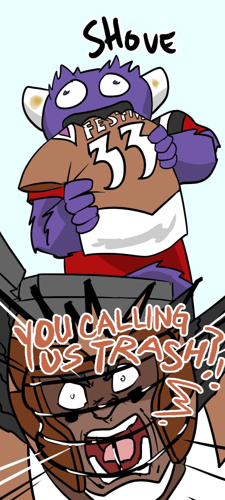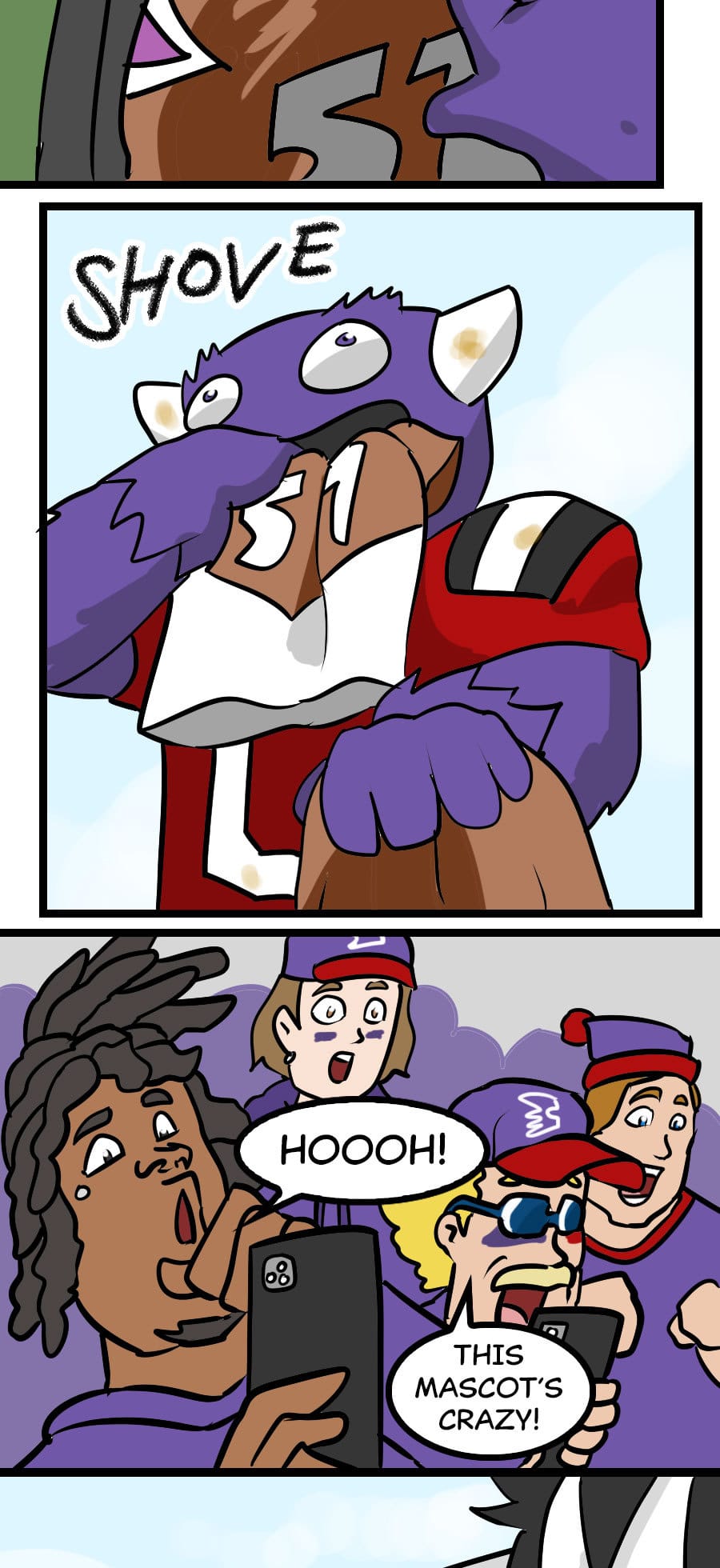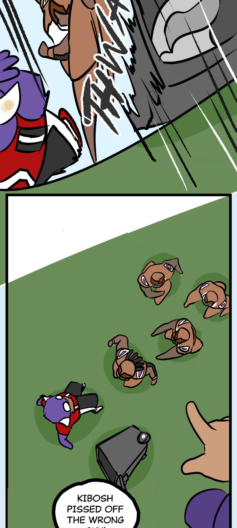 Roo's gig as wacky mascot "Kibosh" might be fun, but it’s riddled with hazards: rowdy fans, unpaid hours, dangerous stunts, and no benefits! Fed up, Roo organizes a mascot union and immediately draws the wrath of his corporate employers. Witness his journey from exploited clown to workplace activist in this Shonen-style dramedy. Even the most absurd of jobs demands dignity, and especially healthcare. Episodes every 7-10 days!