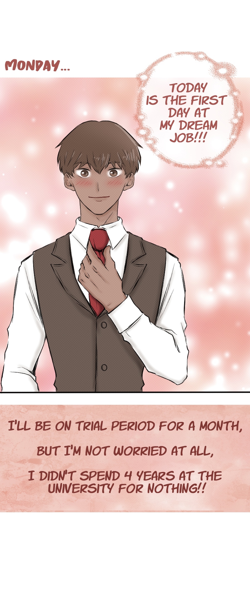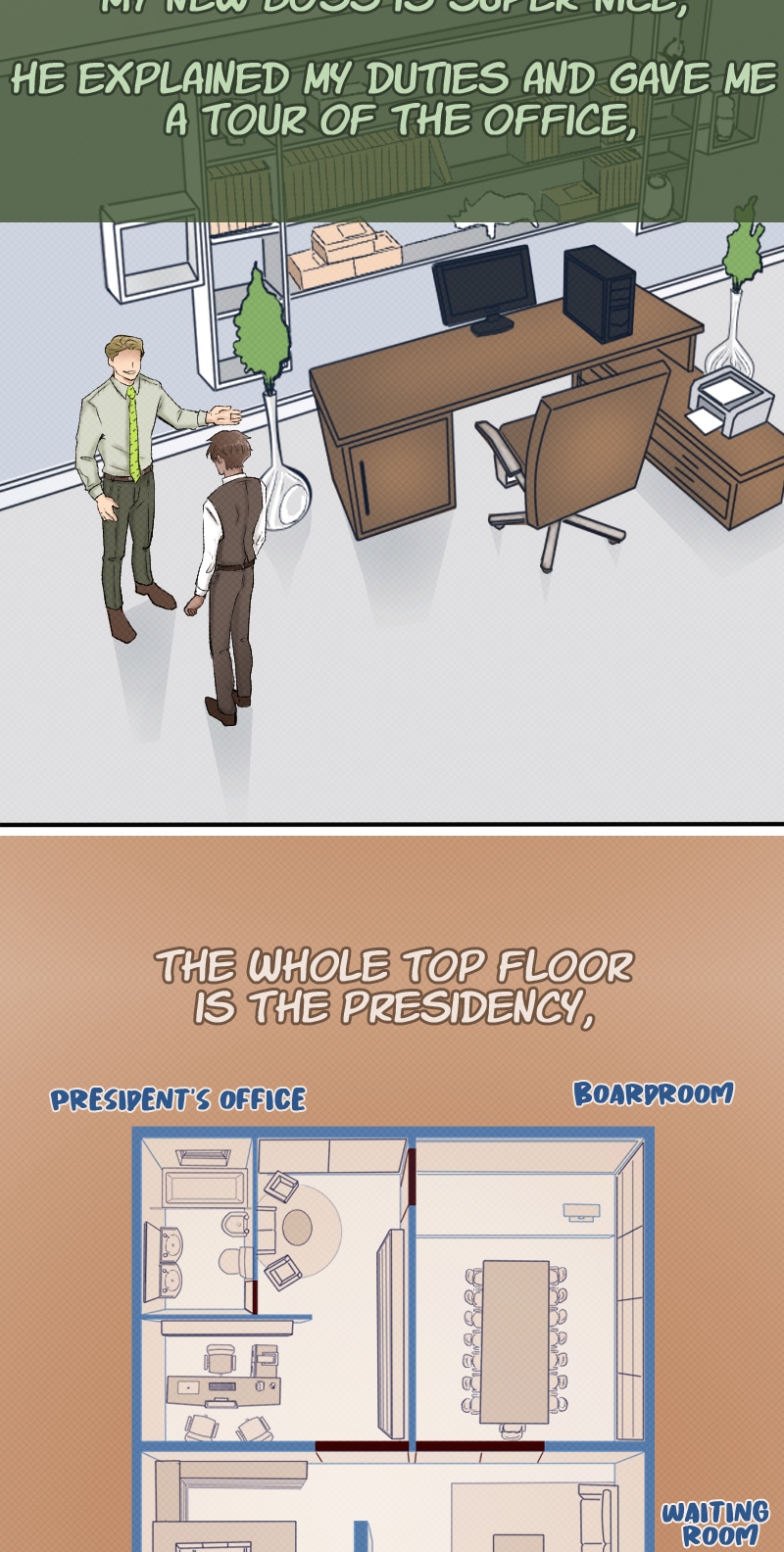 together and have sex, the next day he is called to start working as an executive secretary in a prestigious company, he is surprised to find the man from the night before working there as