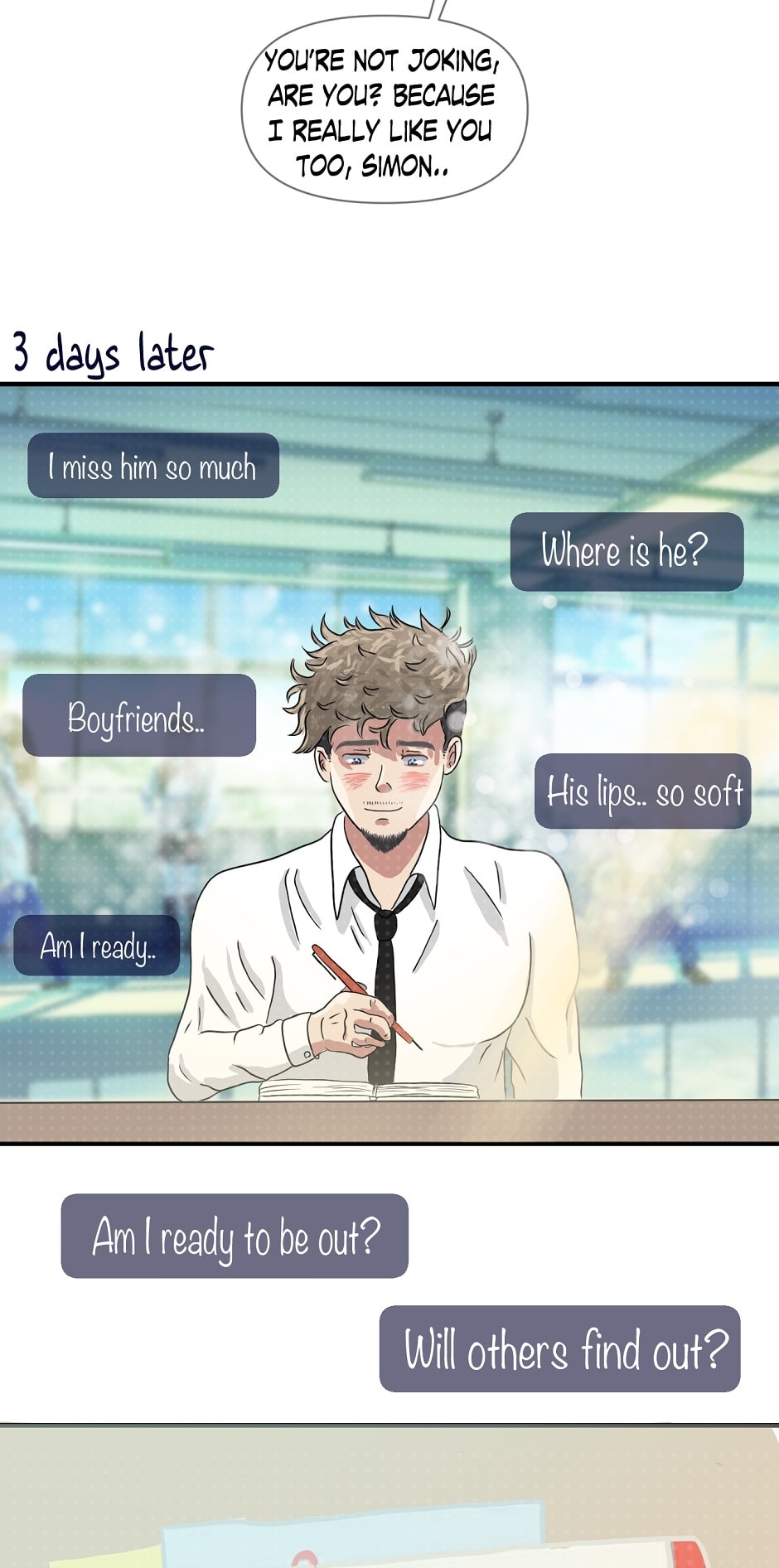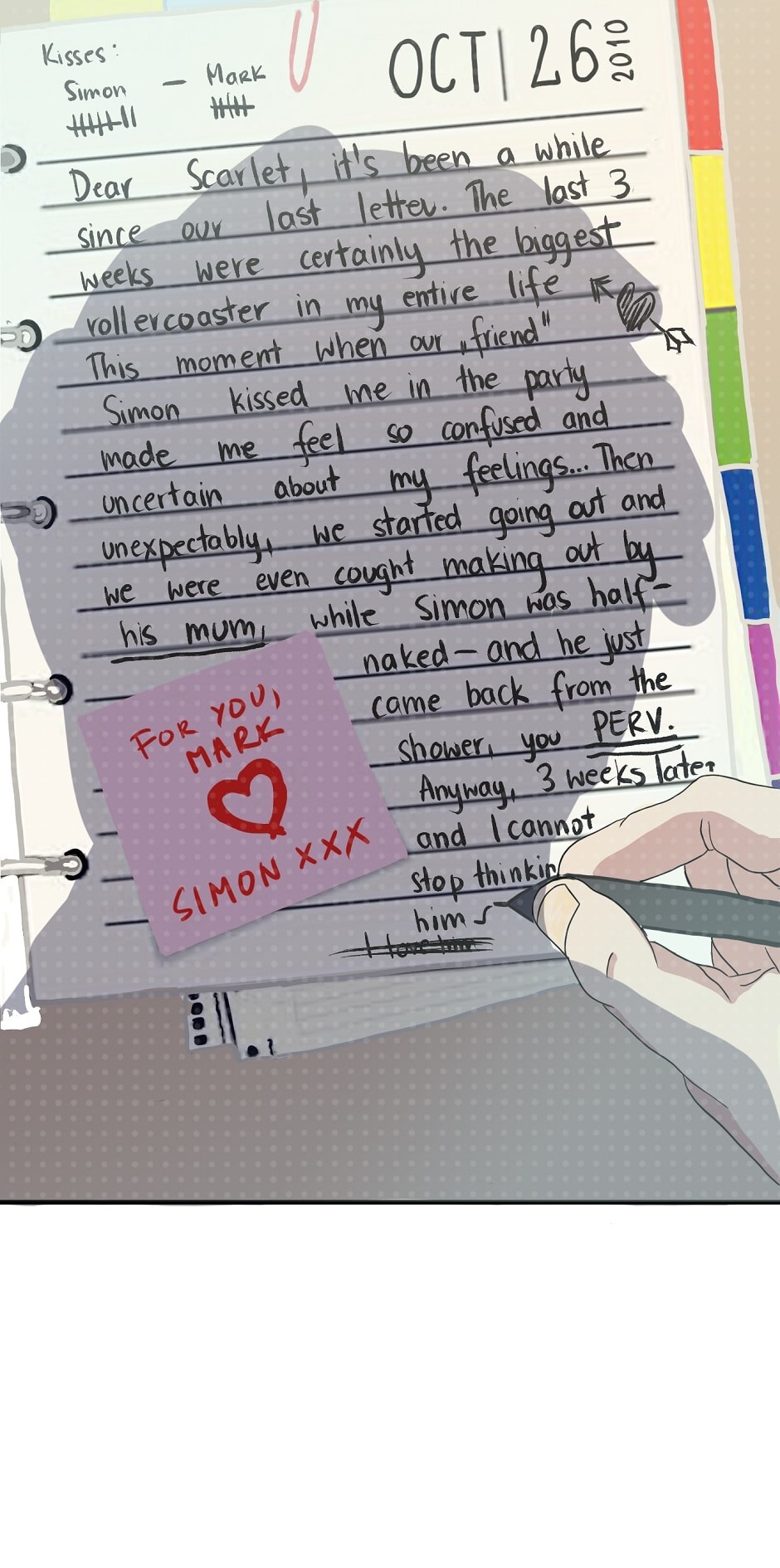 Simon is a usual guy from London. He studies art, but at the same time he noticed Mark and tried to make a move on him. While rejected on the first place, he never gave up on his feelings and decided to share more of them with Mark in a very, unusual, and, unconventional way.
