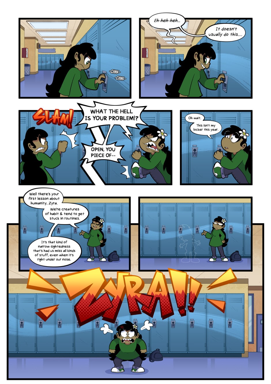 On this strange world called "Earth", Zyra teams up with a plucky starchild named Rain Jones who helps him blend in with the native "Human Race" in the best way possible: disguising him as an awkward, geeky high school student.