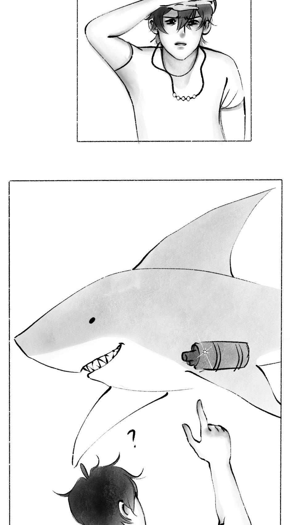 After leaping into the ocean, a boy wakes up only to find that he can no longer breathe on land. With the help of a half-shark mermaid, they wander the vast ocean in hopes of stumbling across an explanation.