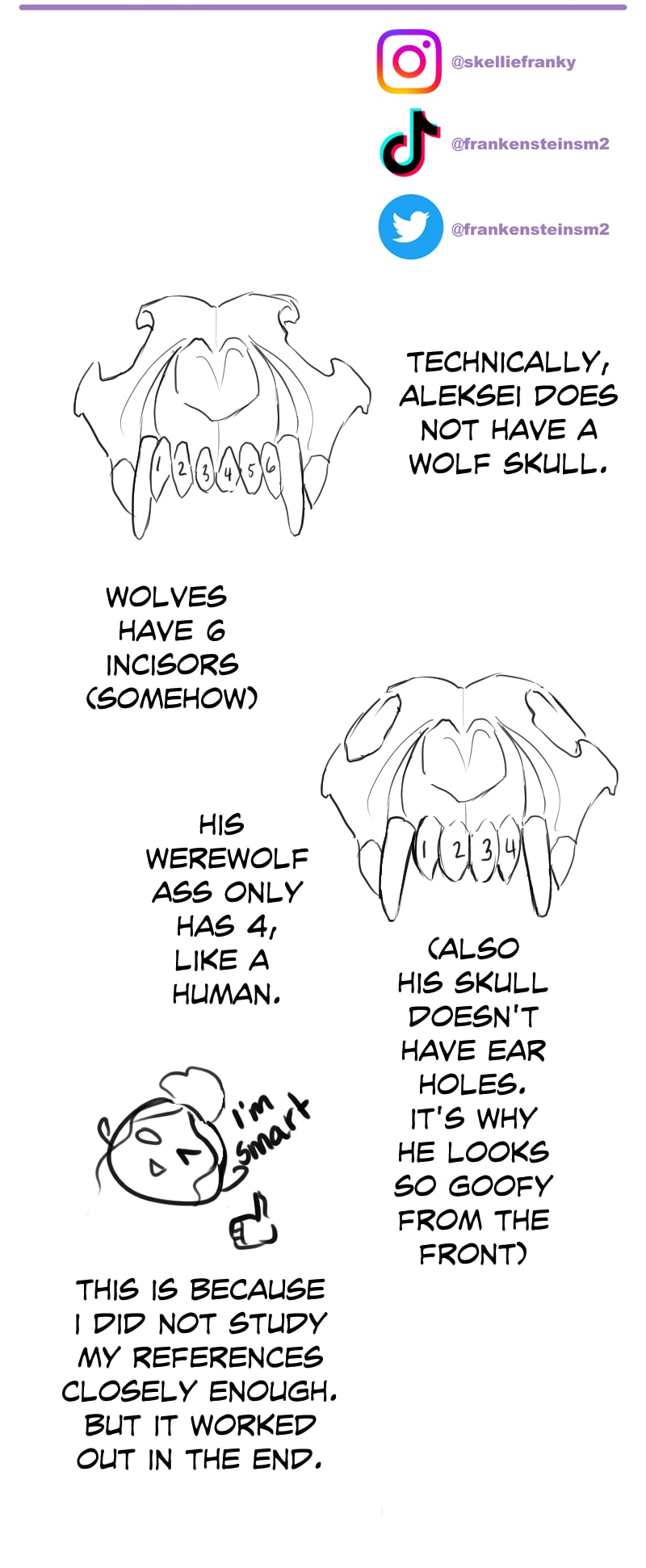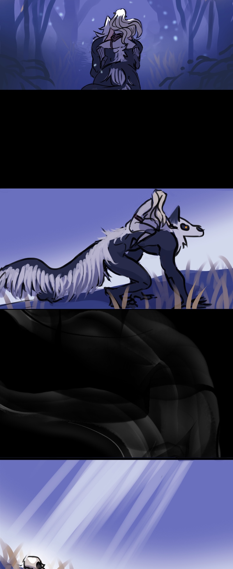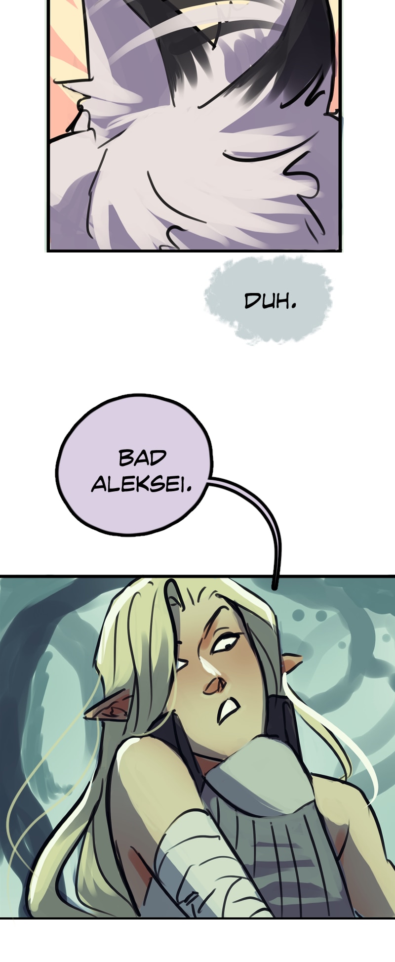 In the zoomed out version of Aleksei he looks like a hybrid of wolf and giant skunk, and now I can’t unsee it. I love your characters and your way of story telling