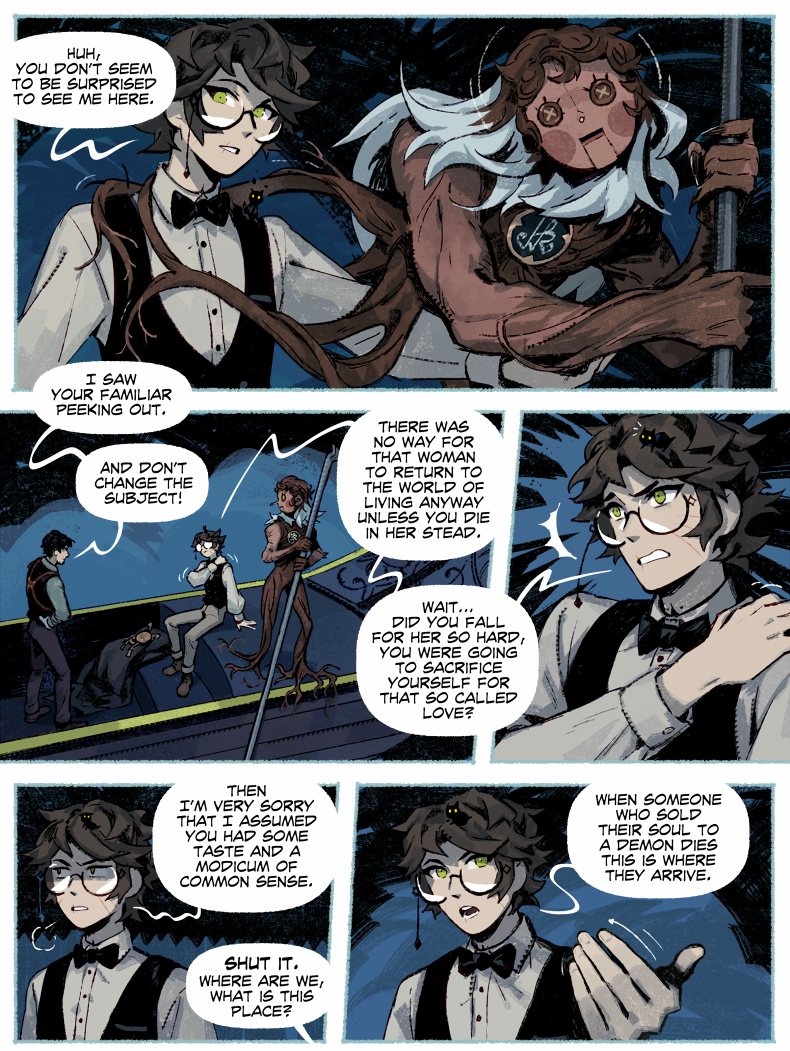 HAYDEN’S NOTES is a magic realism mystery with horror elements, set in the fictional country in the first half of the 20th century. The comic’s told in the non-chronological order revolving around Hayden Carter, immortal (by accident) gray mage, pursuer of knowledge and a witty nuisance for everyone around.